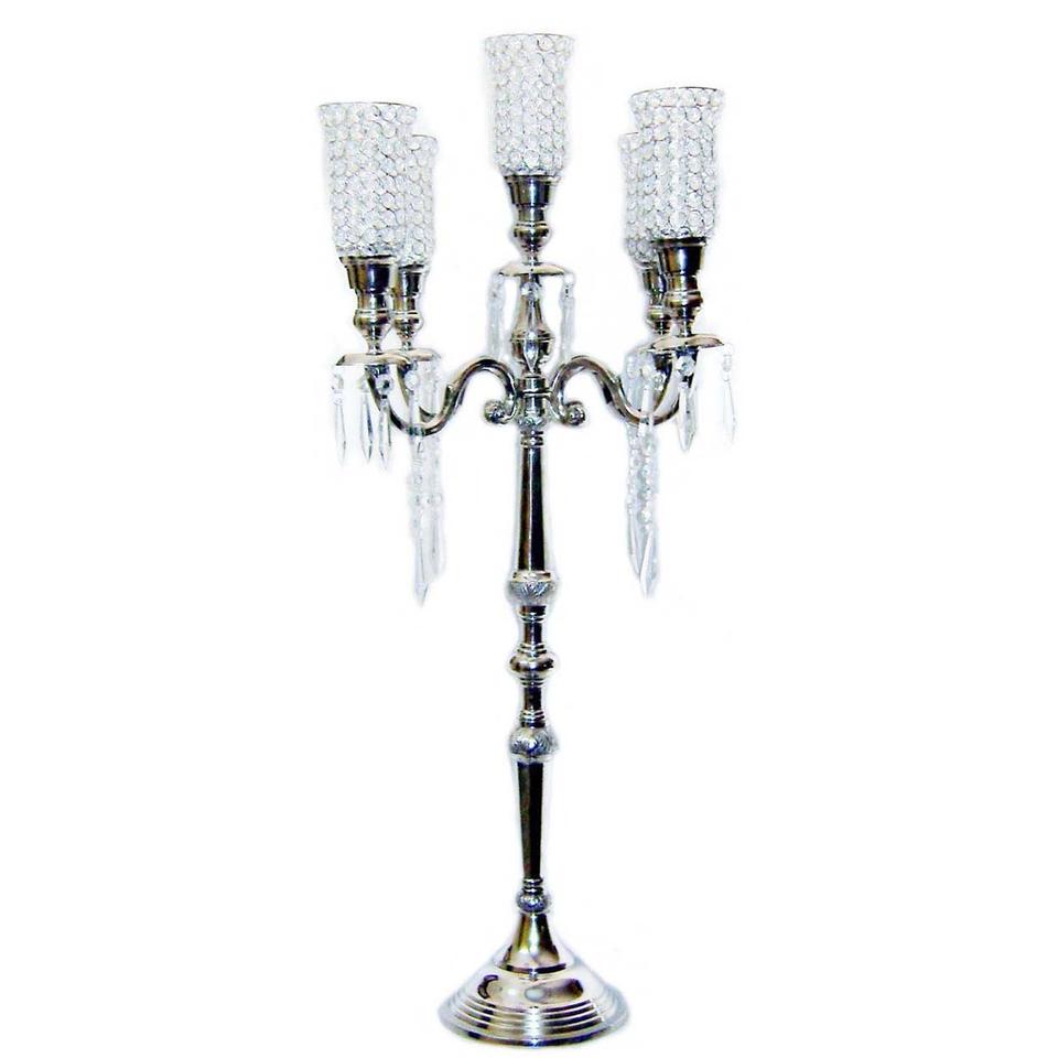 เชิงเทียนตกแต่งโต๊ะงานแต่งงานแบบใหม่ สีขาว 5 แขน ก้านสีน้ำตาล งานแฮนด์เมด