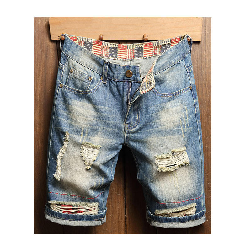 กางเกงขาสั้นผ้ายีนส์ผู้ชายคุณภาพสูง