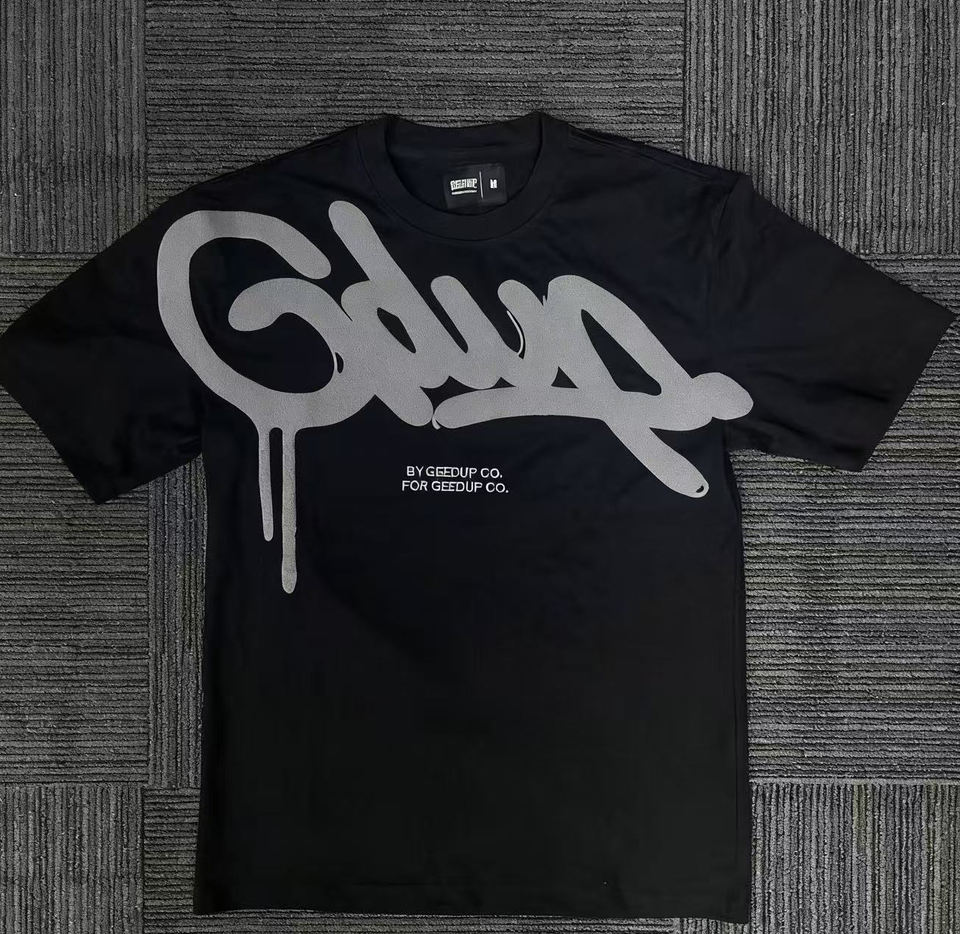 เสื้อยืดโอเวอร์ไซส์แขนสั้นลำลองแบรนด์ GEEDUP พิมพ์ลายตัวอักษร ดีไซน์ทันสมัย ผ้าฝ้ายแท้ 100% คุณภาพเยี่ยม สินค้ามาใหม่สำหรับผู้ชาย