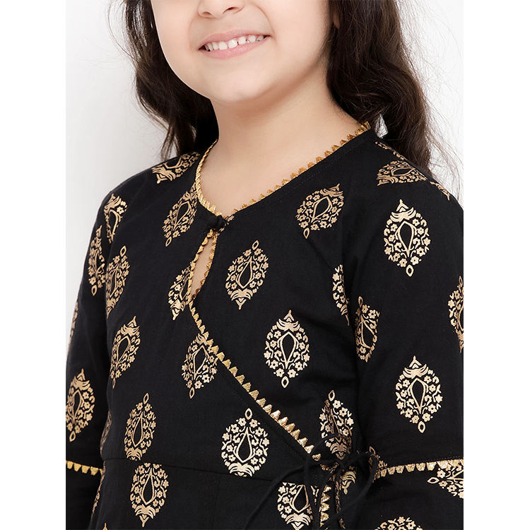 เสื้อผ้าเด็กแบบดั้งเดิมมาใหม่จากอินเดีย ชุดเด็กผู้หญิงออนไลน์ เสื้อคุรตะลายทางสีดำสุดหรูพร้อมกางเกงปาลาซโซ
