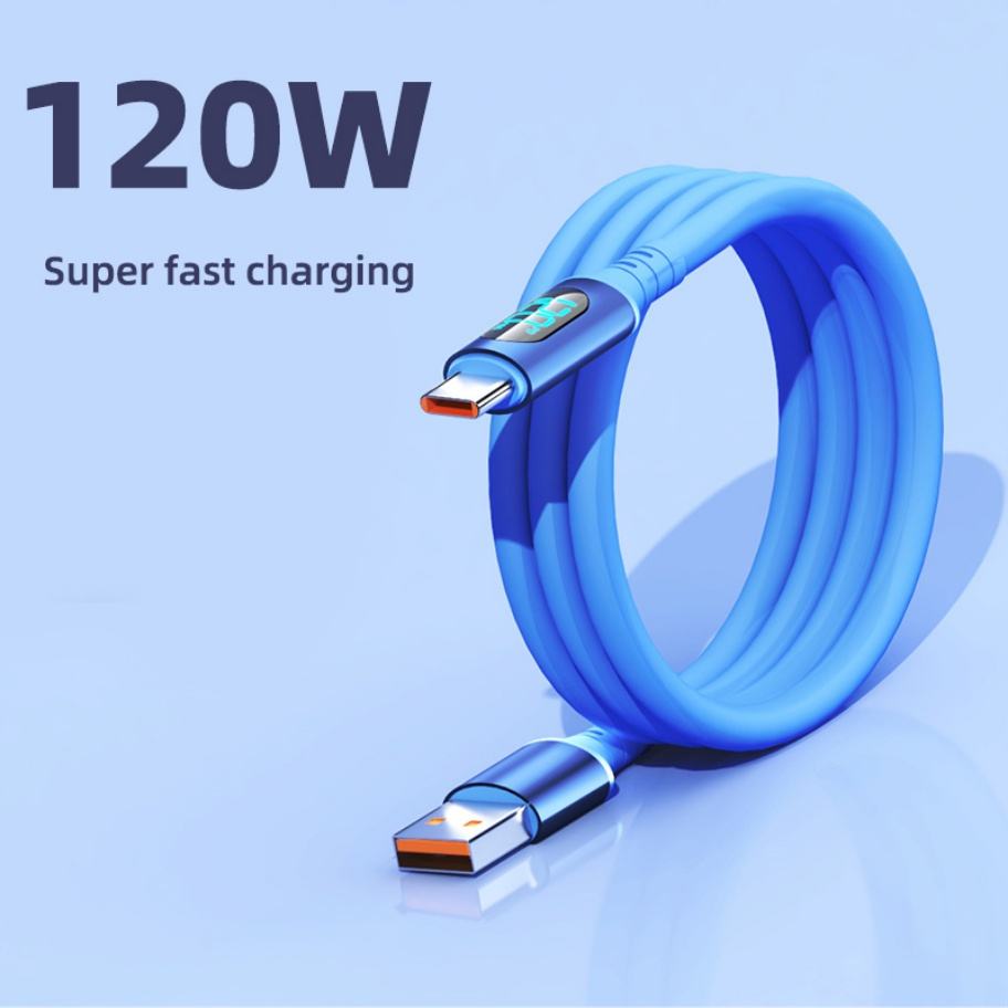 New Arrival USB C Cable with LED Display 120W Super Fast Charging 1M 2M Cable Universal for Mobile Phone Devices