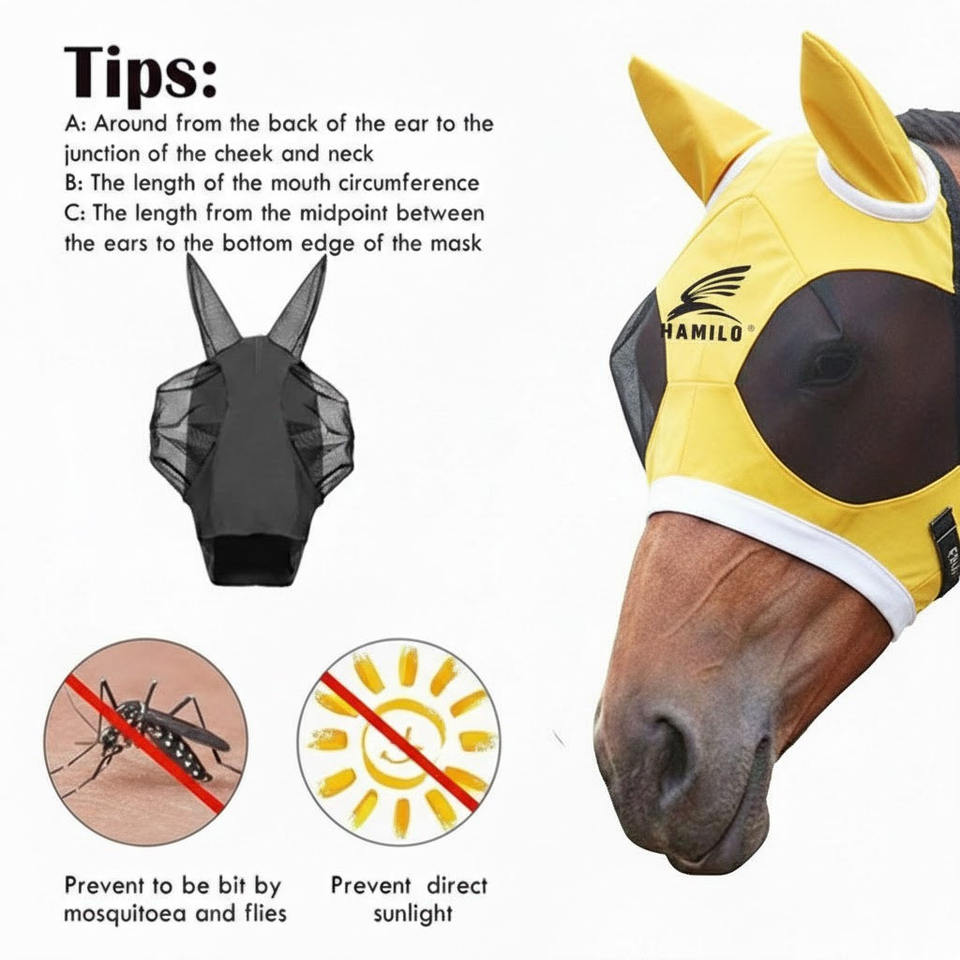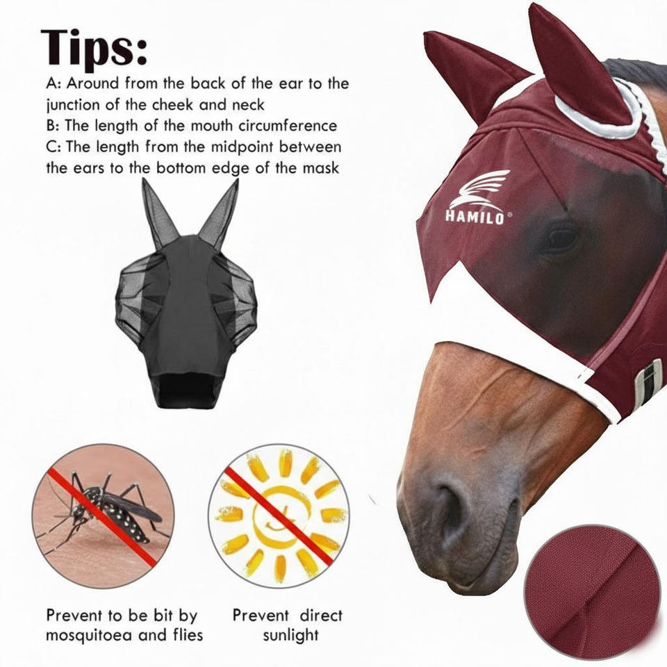 New Arrival UV Protection Fly Mask Comfortable Horse Fly Mask With Ears Breathable Elasticity Fly Mask With Mesh Eye Covers