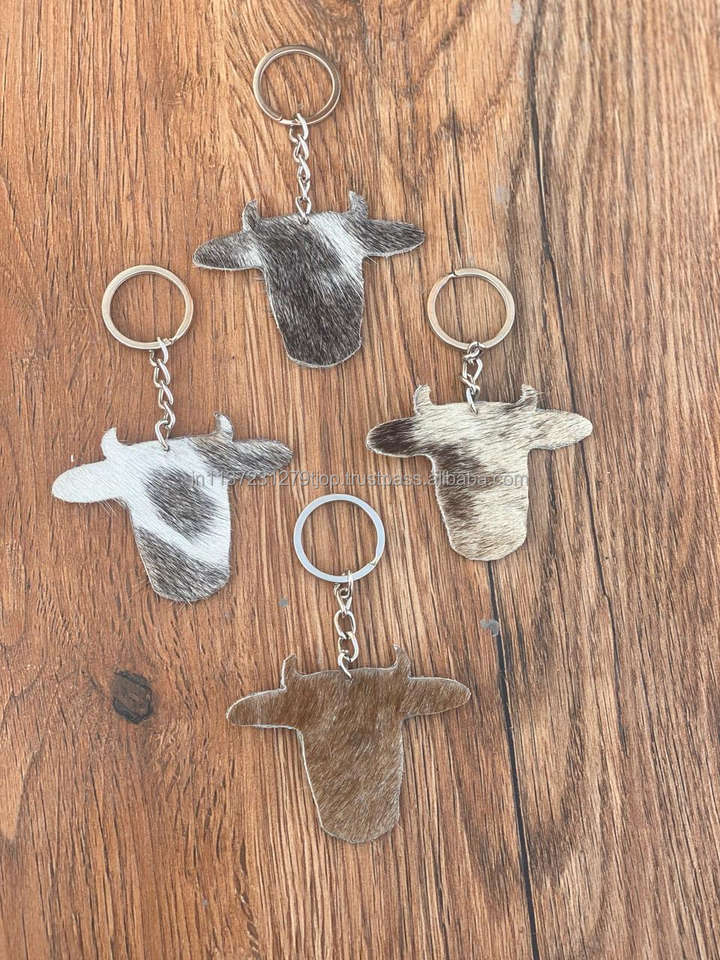 มาใหม่ล่าสุดการออกแบบที่ไม่ซ้ํากัน cowhide พวงกุญแจหนังขนสัตว์จริงพวงกุญแจมีสไตล์ร้อนขายพวงกุญแจคุณภาพสูง