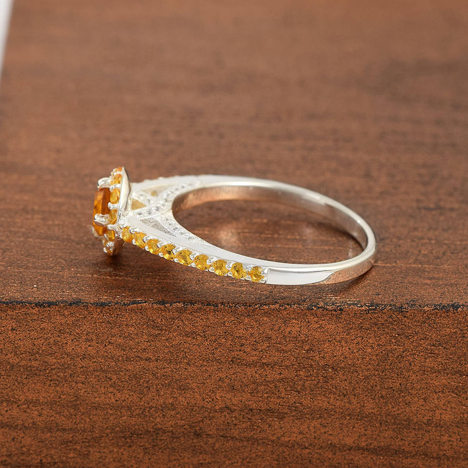 แหวนพลอยซิทรีนธรรมชาติสีเงินสเตอร์ลิง925จากนักออกแบบมาใหม่ดีไซน์ไม่เหมือนใครการตั้งค่าแบบคลาสสิกสำหรับงานแต่งงาน