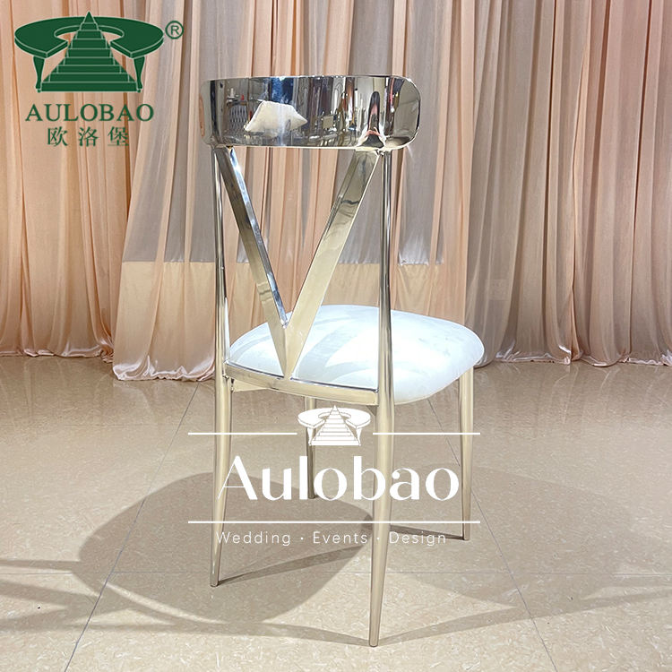 เก้าอี้ออกงานจัดเลี้ยงทำจากสแตนเลสมีกรอบด้านหลังตัววีเก้าอี้ออกงานพร้อมเบาะ