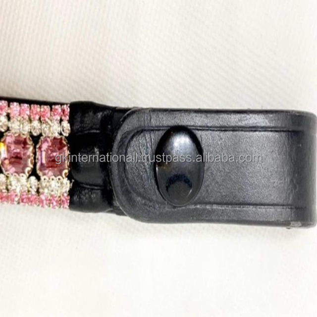 สายคาดคิ้วหนังอังกฤษสีดำรูปตัววีมาใหม่ประดับพลอยเทียมคริสตัลใสสีชมพูแวววาว