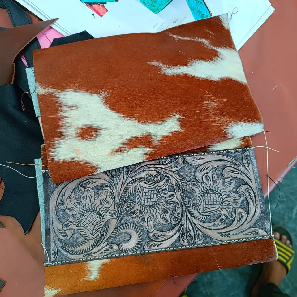 กระเป๋าสะพายคาดลำตัวลายดอกไม้ของผู้หญิงลายคาวเกิร์ลวินเทจแฟชั่นผมหนังแท้ออกแบบมือเป็นมิตรต่อสิ่งแวดล้อม