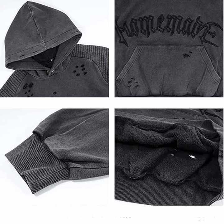 เสื้อฮู้ดวินเทจผ้าฝ้าย 100% สไตล์สตรีทแวร์ฮิปฮอป ปักลายขาดๆ แบบดิสเทรส ลุคซักซีด รุ่นใหม่ล่าสุด