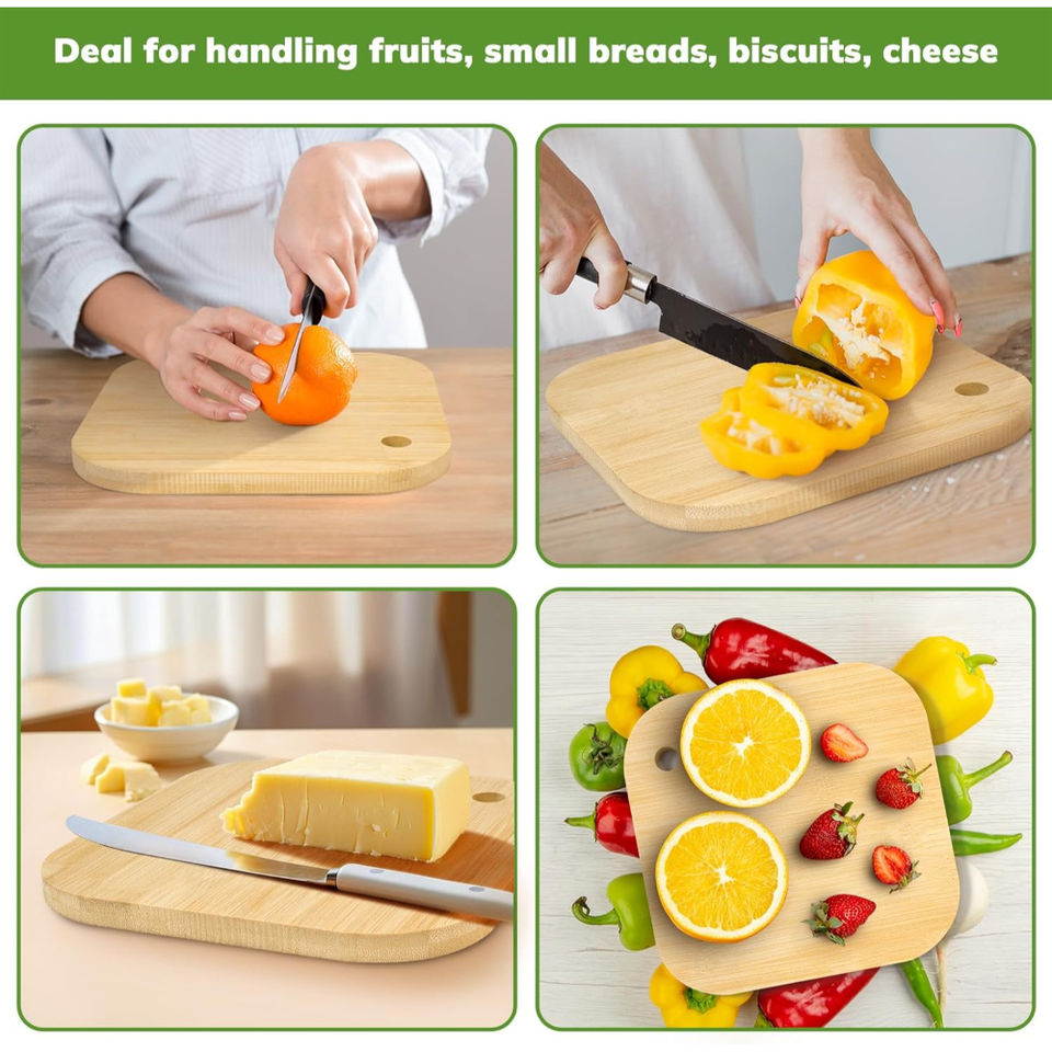 เขียงไม้ไผ่น้ำหนักเบาพร้อมฐานกันลื่นเพื่อการจับถือที่ง่ายดาย เหมาะสำหรับการหั่นตัดในชีวิตประจำวัน และใช้เป็นอุปกรณ์ครัวที่จำเป็น จำหน่ายแบบขายส่ง