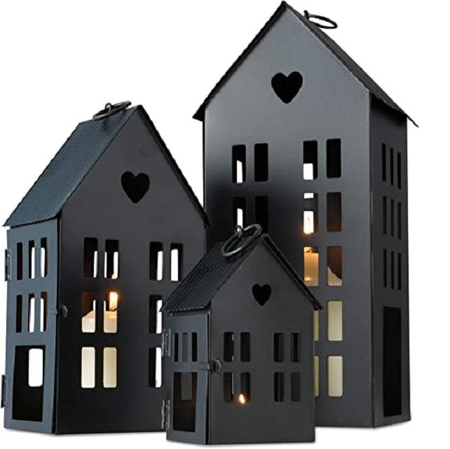 ใหม่มาถึงสไตล์วินเทจชุบสังกะสีโลหะทาวน์เฮาส์สีดำแขวนชุด3ถนนบ้านสำหรับตกแต่งบ้านคริสต์มาส