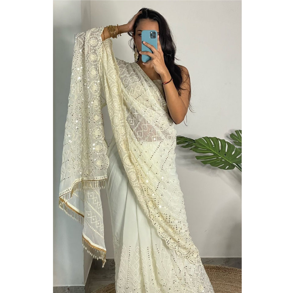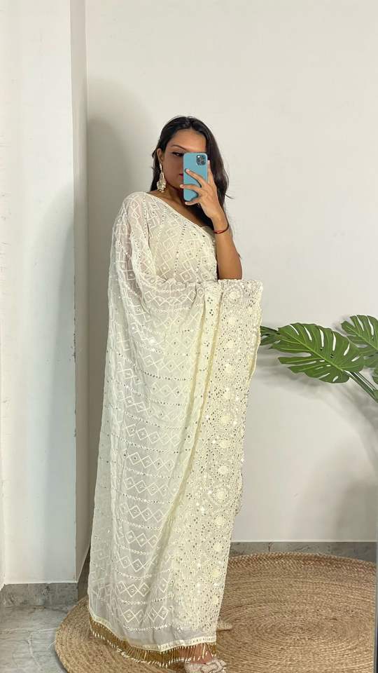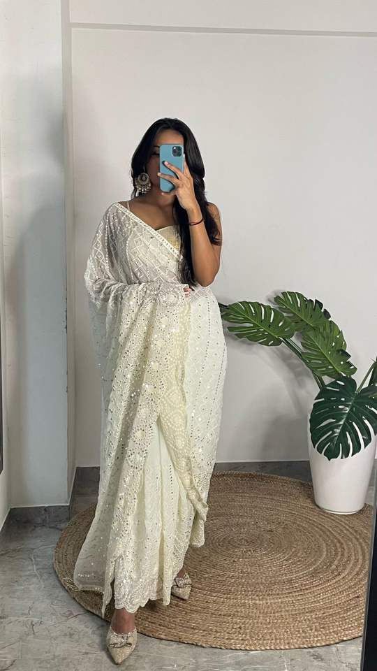 ชุดปาร์ตี้มาใหม่สำหรับผู้หญิงผ้าส่าหรีงานปักลายลำดับสำหรับผู้หญิง