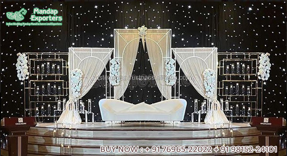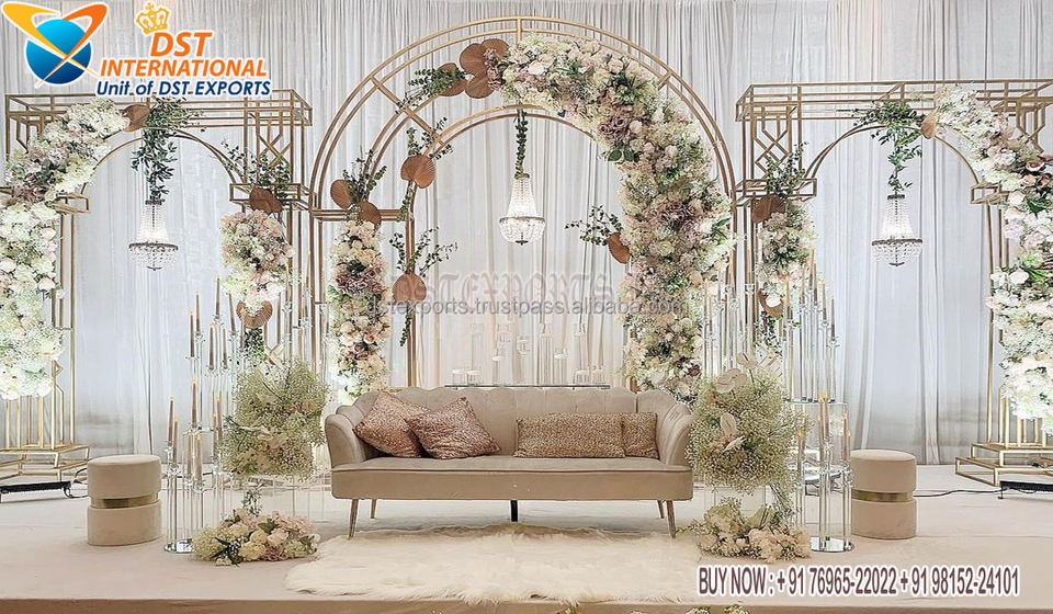 การต้อนรับงานแต่งงานใหม่แผงโลหะพื้นหลังกรอบโลหะด้านหลังสำหรับงานแต่งงานตกแต่งใหญ่ไขมันอินเดียงานแต่งงานฉากหลังโลหะ