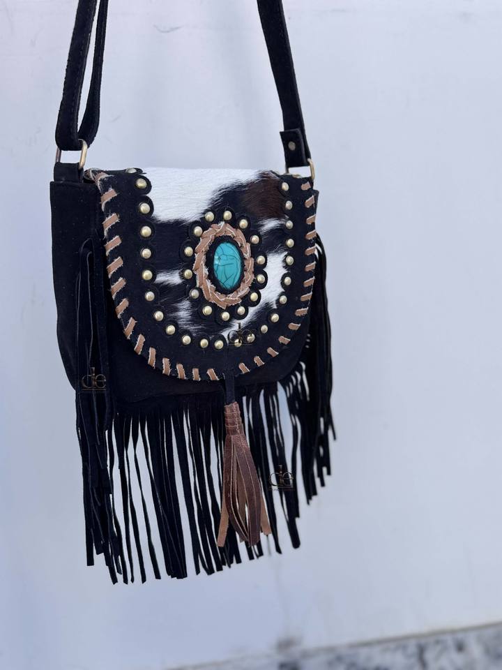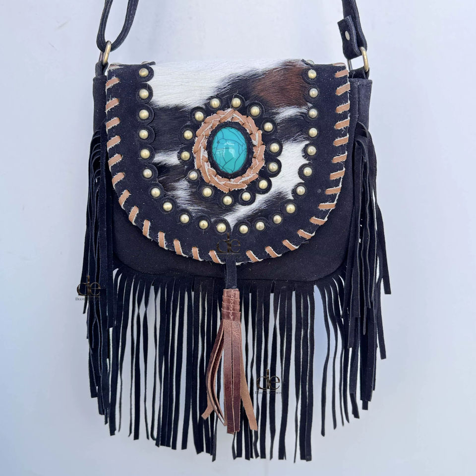 กระเป๋าหนังวัวแท้แบบสะพายไหล่สไตล์โบฮีเมียน พร้อมพู่ห้อยเก๋ไก๋ กระเป๋าถือทรงใหม่มาแรง กระเป๋าหนังวัวขนาดเล็กขายดี