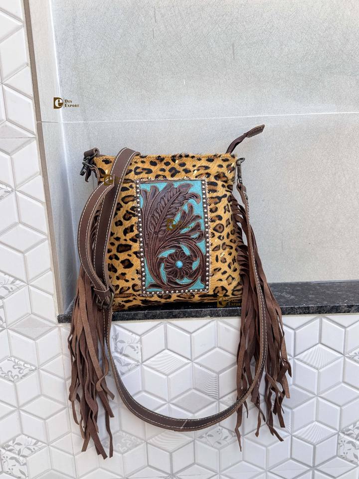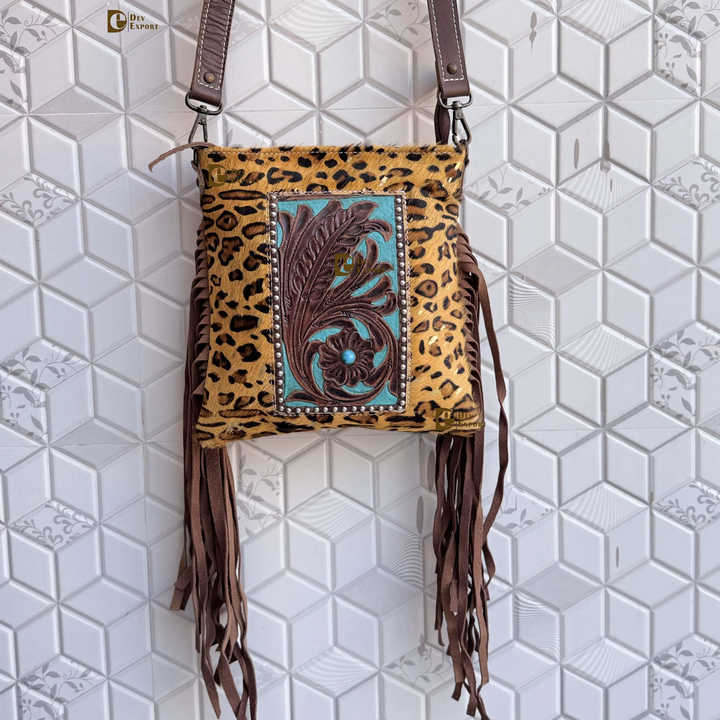 กระเป๋าถือหนังสัตว์สไตล์ตะวันตก, กระเป๋าสลิงพิมพ์ลายเสือดาวกระเป๋าถืองานปาร์ตี้แกะสลักด้วยมือ