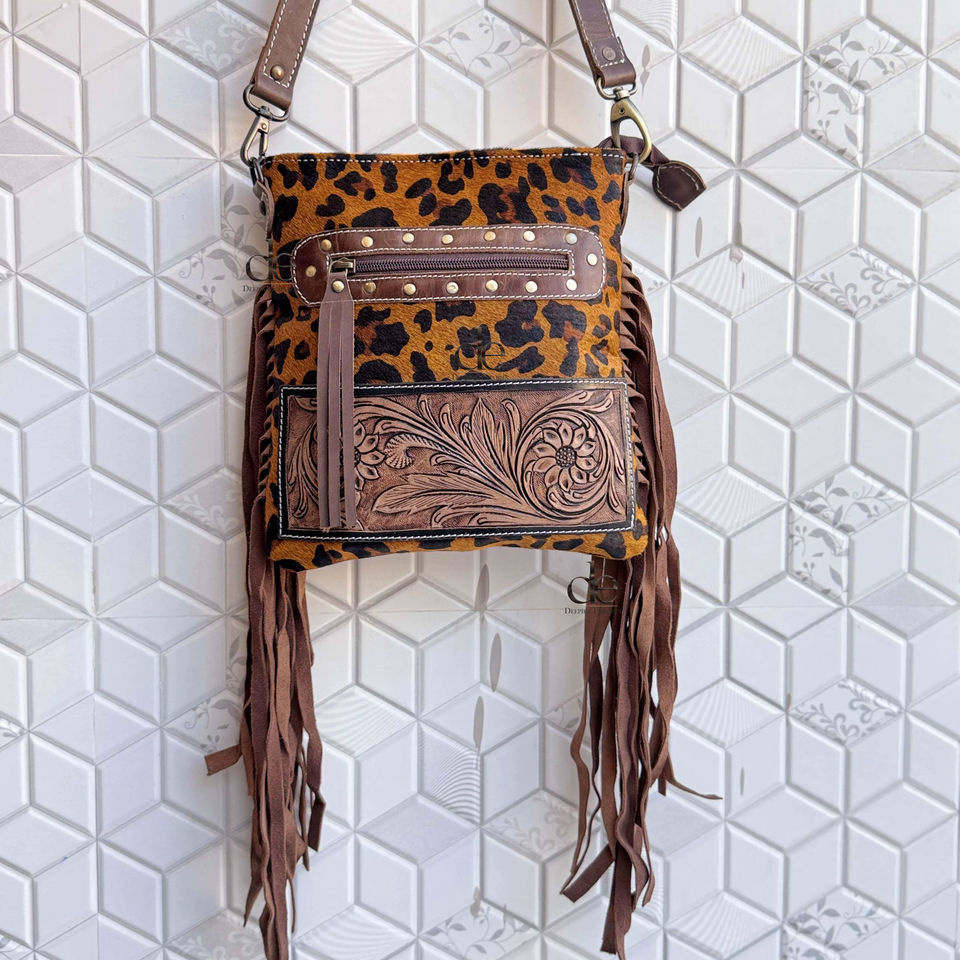 กระเป๋าถือหนังสัตว์สไตล์ตะวันตก, กระเป๋าสลิงพิมพ์ลายเสือดาวกระเป๋าถืองานปาร์ตี้แกะสลักด้วยมือ