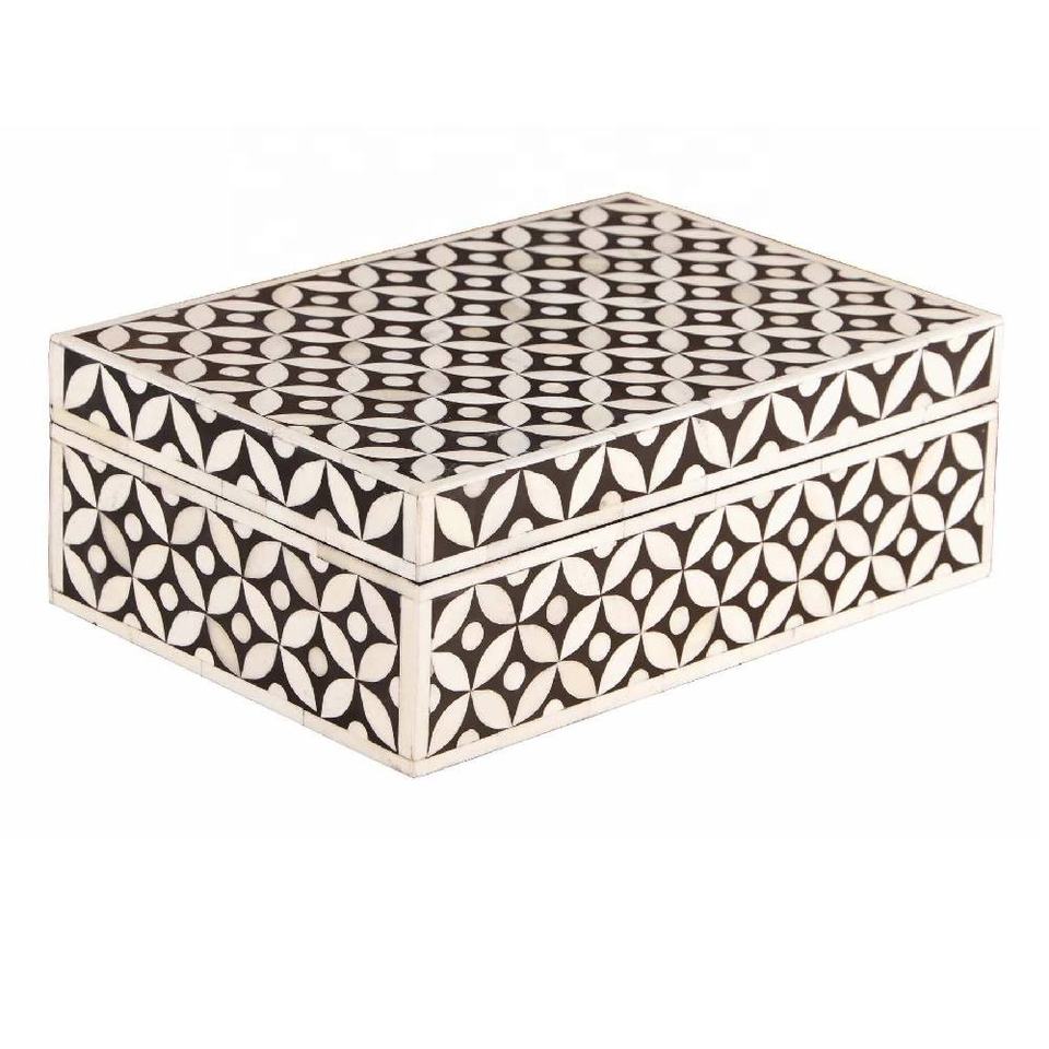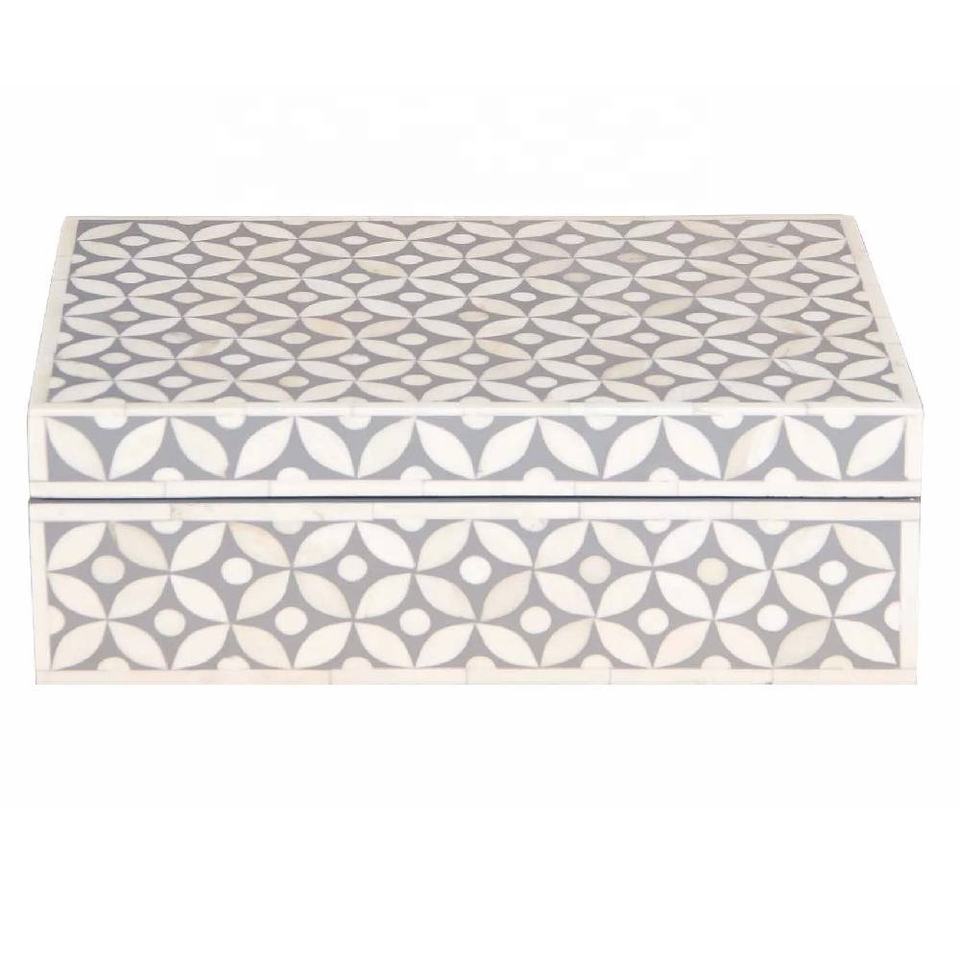 สินค้ามาใหม่กล่องใส่เครื่องประดับแบบฝังกระดูกลายเรขาคณิตสีขาวกล่องใส่เครื่องประดับตกแต่งแบบฝังกระดูกกล่องเก็บเครื่องประดับ