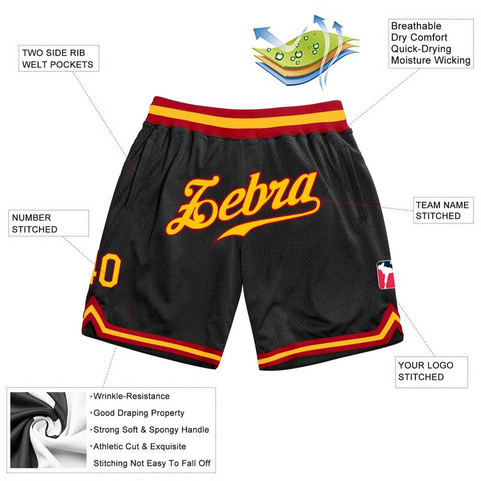 กางเกงขาสั้นบาสเก็ตบอลสำหรับผู้ชายกางเกงขาสั้นบาสเก็ตบอลของแท้สีดำแดงเหลือง