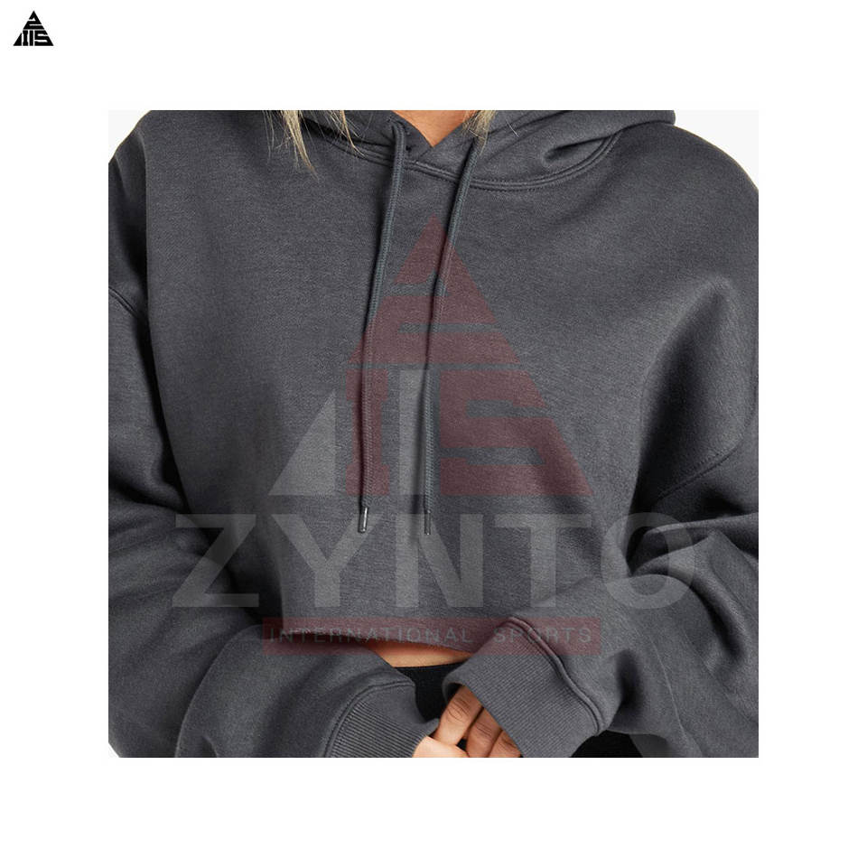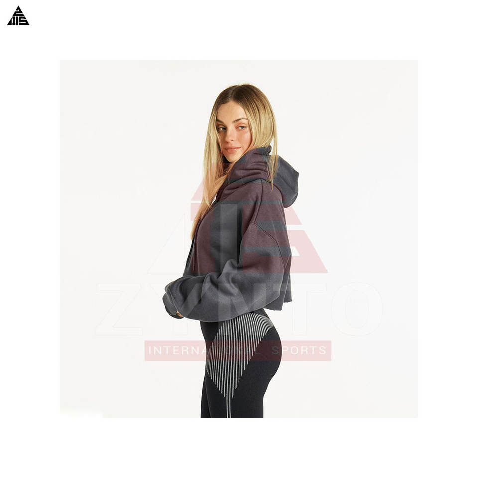 เสื้อครอปท็อปผู้หญิงแบบใหม่ ขายส่ง คุณภาพสูง โลโก้สั่งทำได้ วัสดุผ้าฟลีซ ผ้าฝ้ายผสม เสื้อฮู้ดครอป