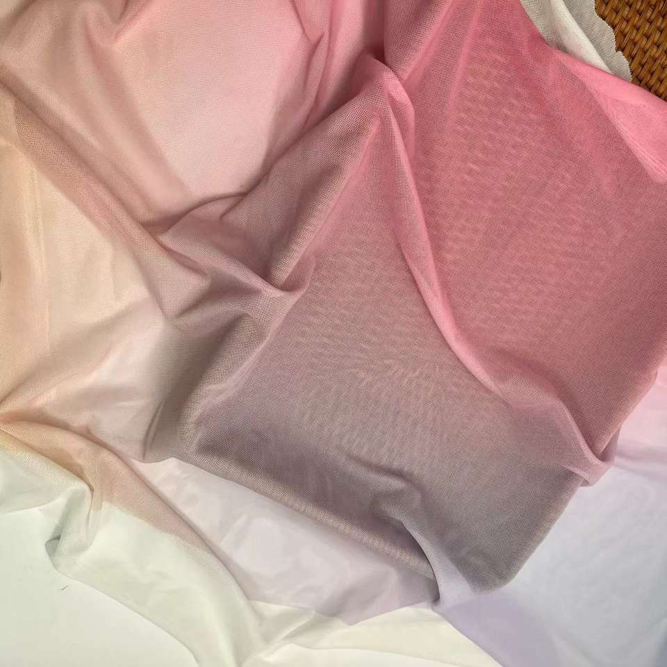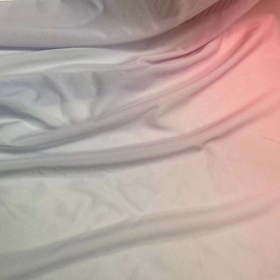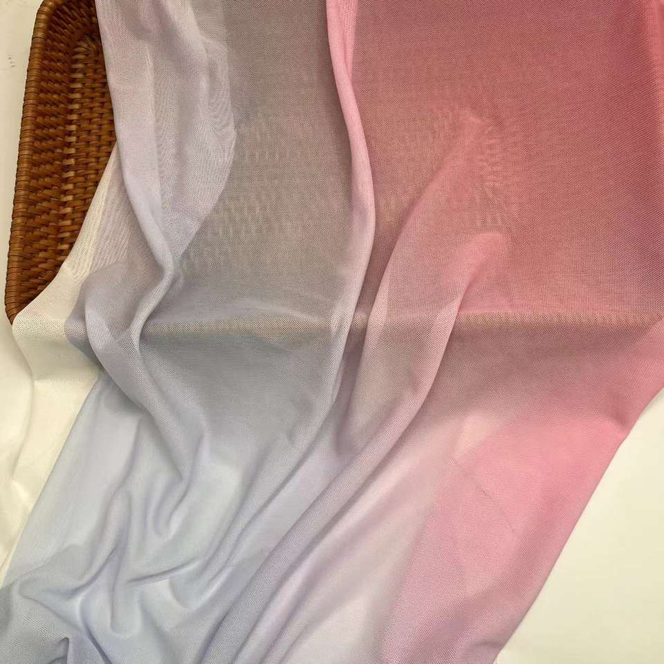 ผ้าสแปนเด็กซ์พิมพ์ลายตาข่ายดิจิทัลแบบไล่เฉดสีดีไซน์คำสำหรับฤดูร้อนสินค้ามาใหม่
