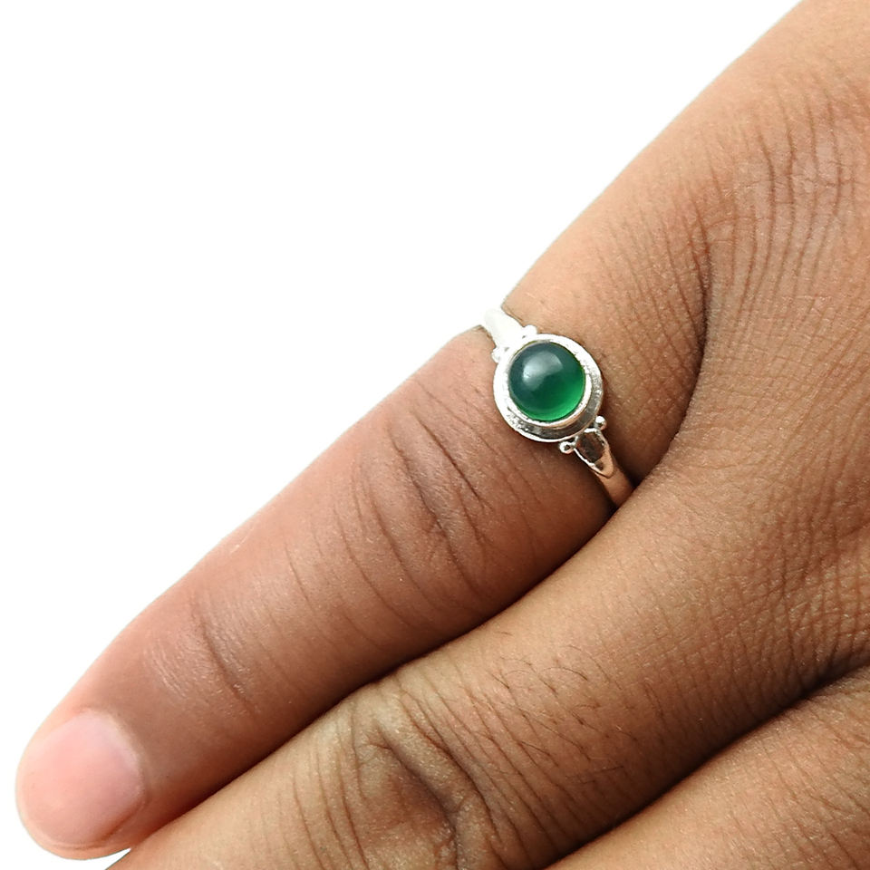 แหวนพลอยโอนิกซ์สีเขียวธรรมชาติเครื่องประดับ925ตามสั่ง