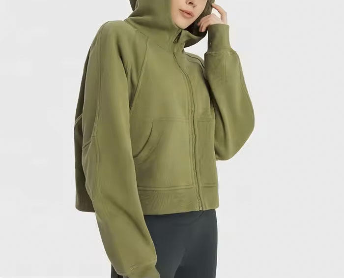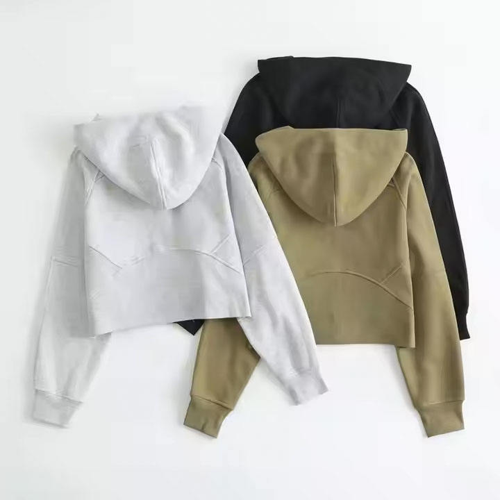 เสื้อครอปมีฮู้ดแขนยาวสำหรับผู้หญิงผ้าฟลีซระบายอากาศได้สำหรับเล่นยิมเล่นกีฬาวิ่งโยคะสินค้ามาใหม่ฤดูหนาว