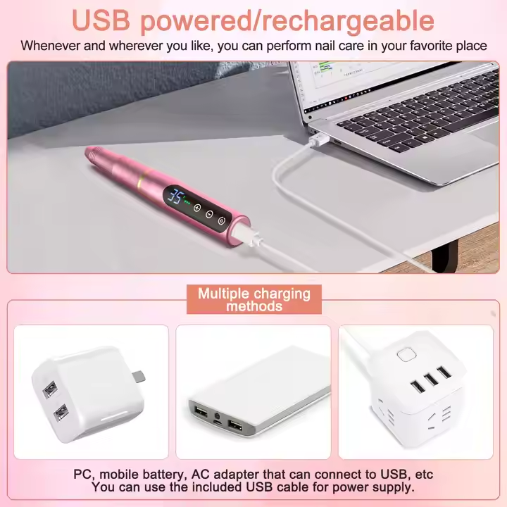 เครื่องเจาะเล็บแบบไร้สาย USB 35000รอบต่อนาทีเครื่องเจาะเล็บแบบพกพาขนาดเล็กมาใหม่