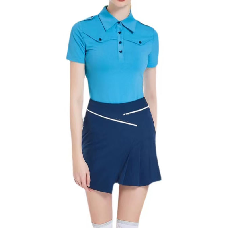 เสื้อโปโลคอกลมผู้หญิง,เสื้อผ้าตีกอล์ฟพิมพ์ลายมีกระเป๋าเสื้อ