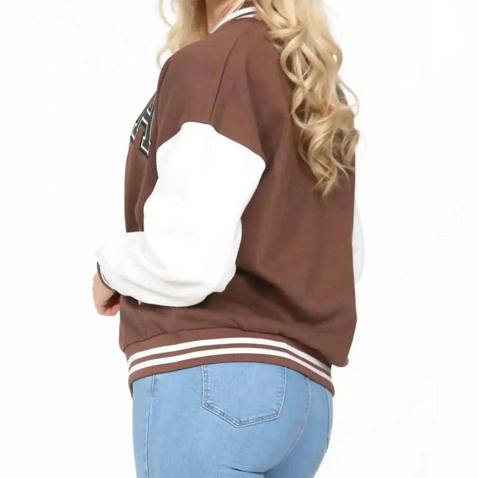 เสื้อแจ็คเก็ตเลตเตอร์แมนสำหรับผู้หญิงรุ่นใหม่ล่าสุด ลายพิมพ์ตัวอักษร สไตล์เบสบอล และเสื้อแจ็คเก็ตวาร์ซิตี้ลำลองสำหรับผู้หญิง