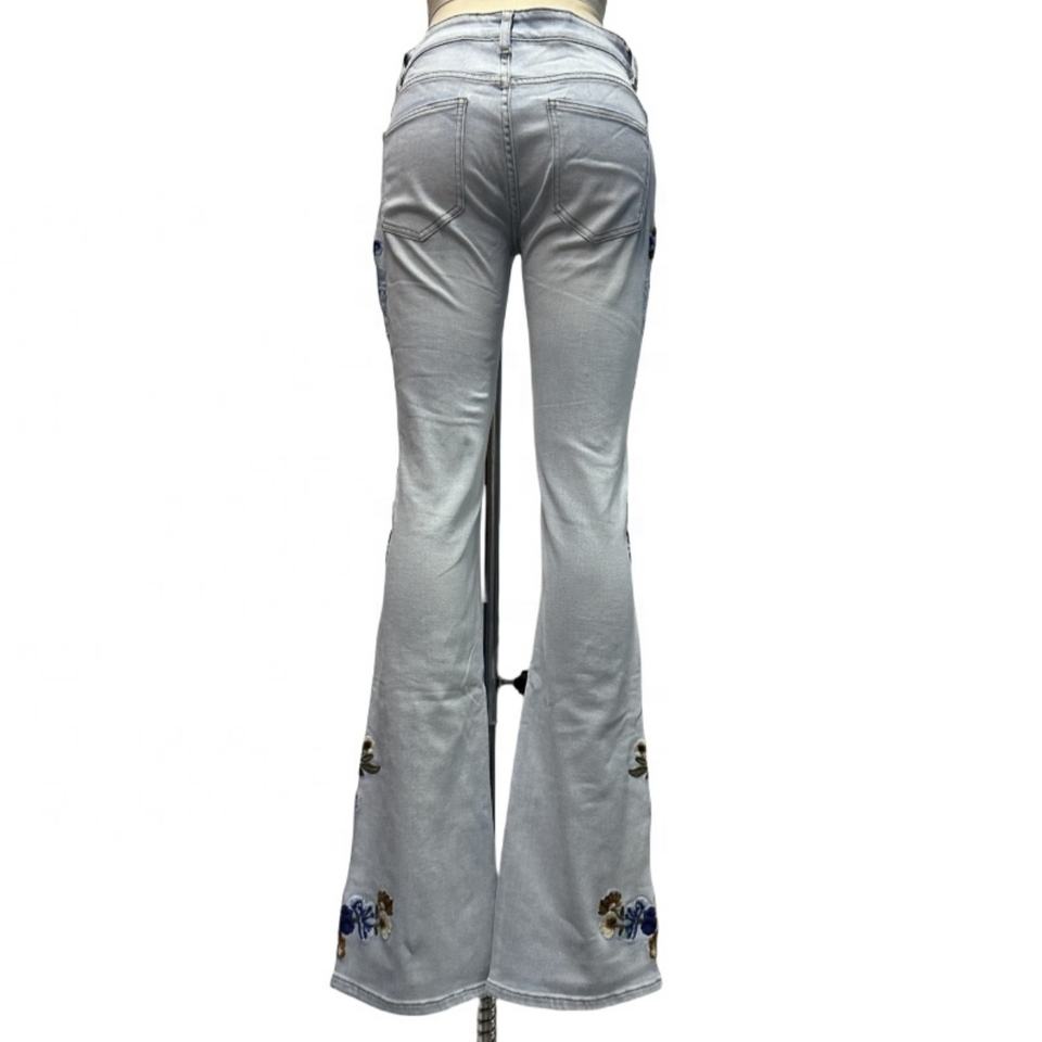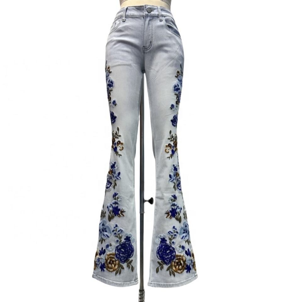 กางเกงยีนส์ปักลายดอกไม้สำหรับผู้หญิงมาใหม่