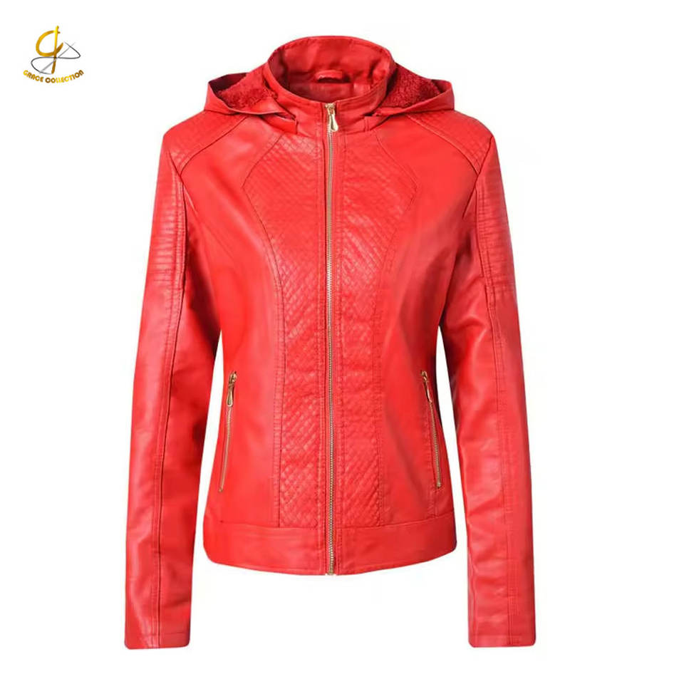 เสื้อแจ็คเก็ตไหมพรมผ้าฝ้าย/ใยไผ่สีแดงแบบมีฮู้ดสำหรับผู้หญิงรุ่นใหม่ล่าสุด สไตล์สตรีทแวร์ทันสมัย กันน้ำ แห้งเร็ว