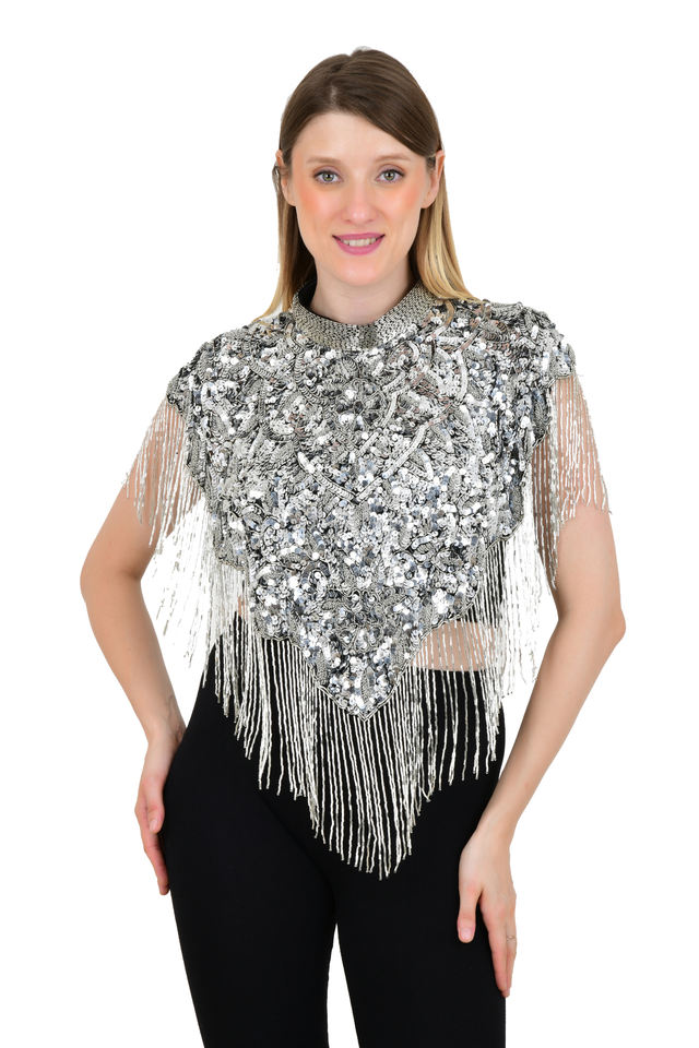 ผ้าเน็ตปักมือประดับลูกปัดและเลื่อมวัสดุ