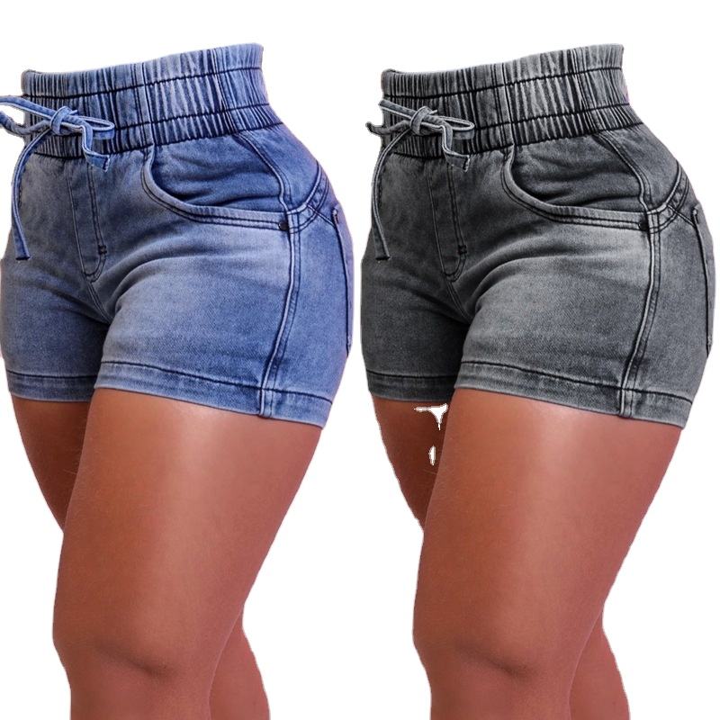 กางเกงยีนส์ขาสั้นผู้หญิงแบบสปอร์ต รุ่นใหม่ล่าสุด สไตล์ลำลอง เอวสูง มีกระเป๋า เอวยางยืด รูดเชือก ระบายอากาศ ทรงเข้ารูป สั่งตัดได้