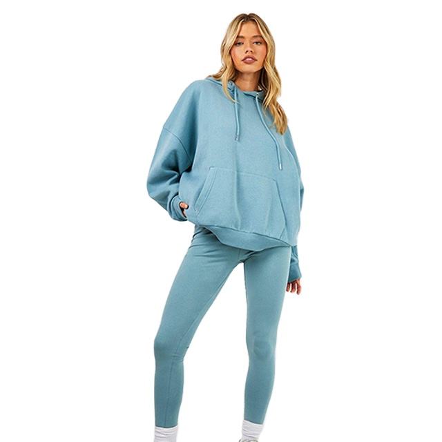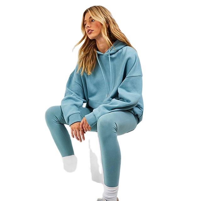New Arrival Winter Solid Women's Oversize Loose Fit Hoodie & Legging 3 Piece Drawstring Streetwear Tracksuits