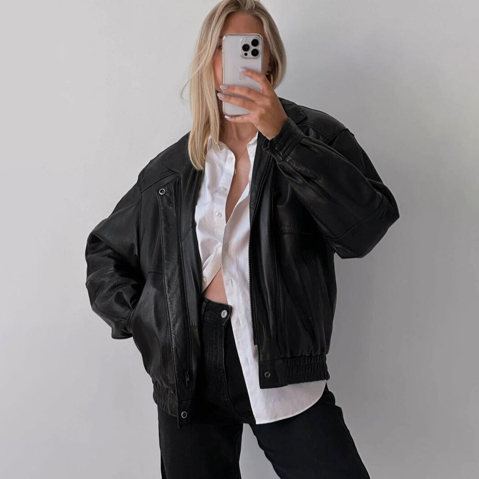 ชื่อผลิตภัณฑ์:แจ็คเก็ตหนังผู้หญิง