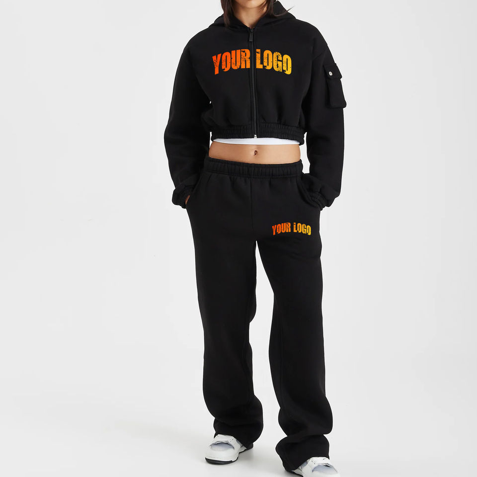 New Arrival Women's Breathable Nylon Tracksuit Winter Cropped Design with Hood Solid Pattern Hot Selling Printed Embroidered