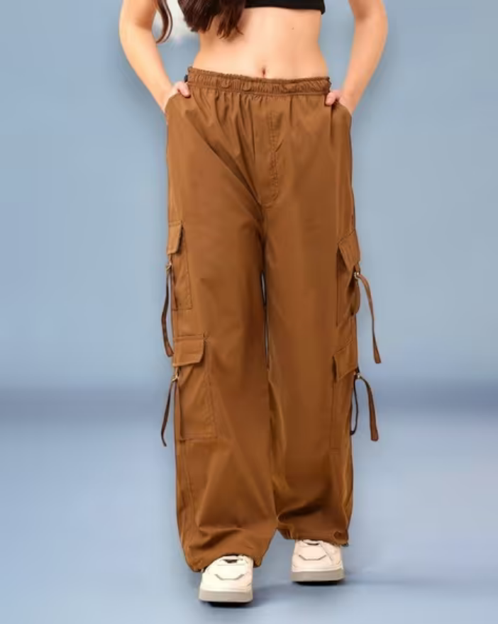 กางเกงคาร์โก้ผู้หญิงรุ่นใหม่เอวสูง มีเชือกผูก ขอบเอวยางยืด กระเป๋าหลายช่อง สไตล์ฮิปฮอป