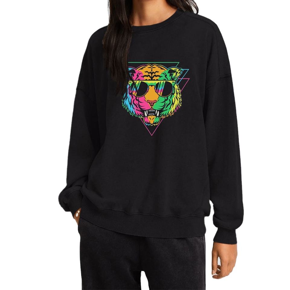 New Arrival Women's Cotton Embossed Streetwear Oversize Jumper Hooded Crewneck Sweatshirt Puff Print Winter Crewneck Sweater