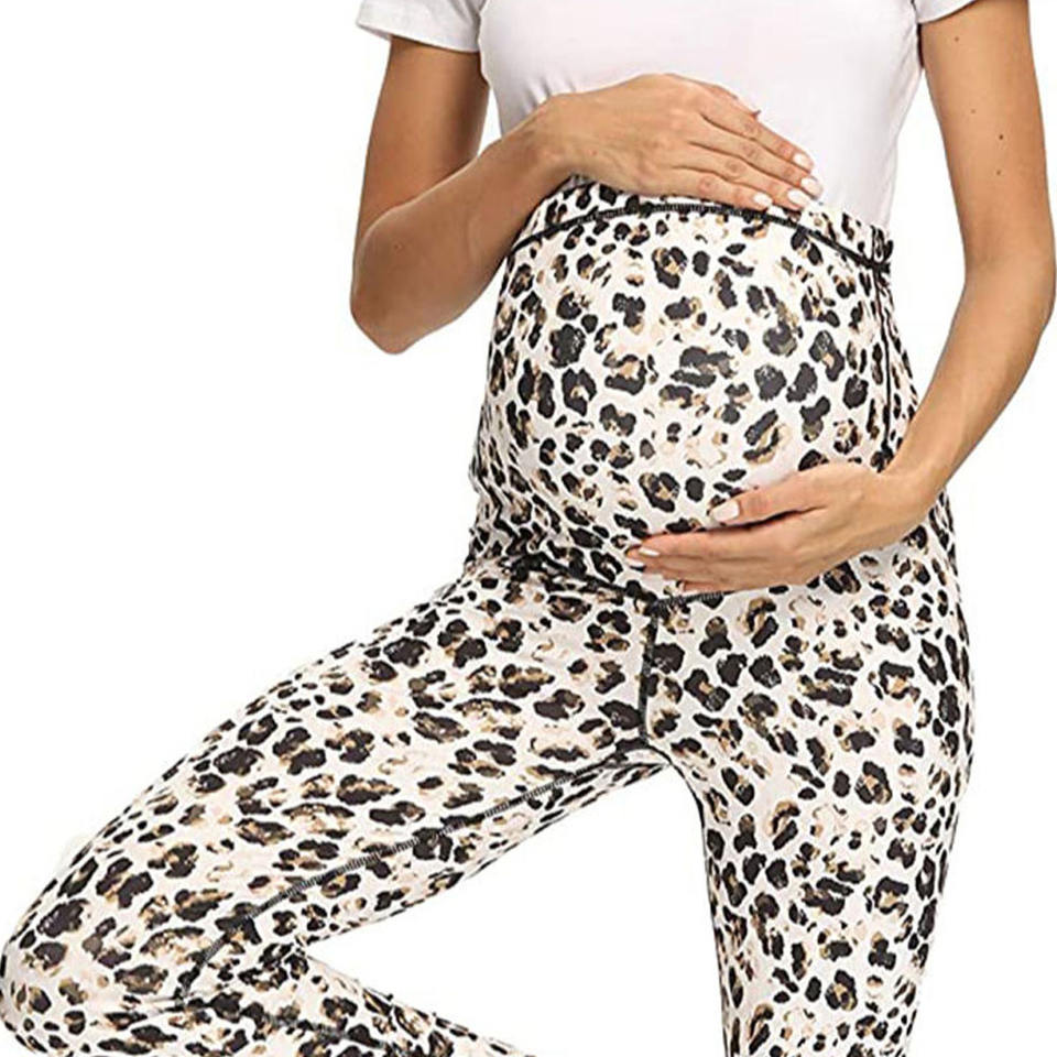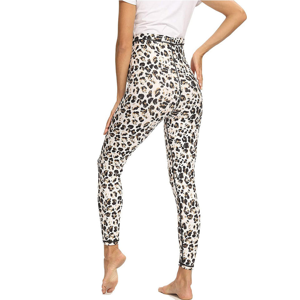เลกกิ้งเอวสูงเอวยางยืดสำหรับผู้หญิงเลกกิ้งผ้าถักรัดรูปพิมพ์ลายเสือดาวระบายอากาศได้ดีสินค้ามาใหม่