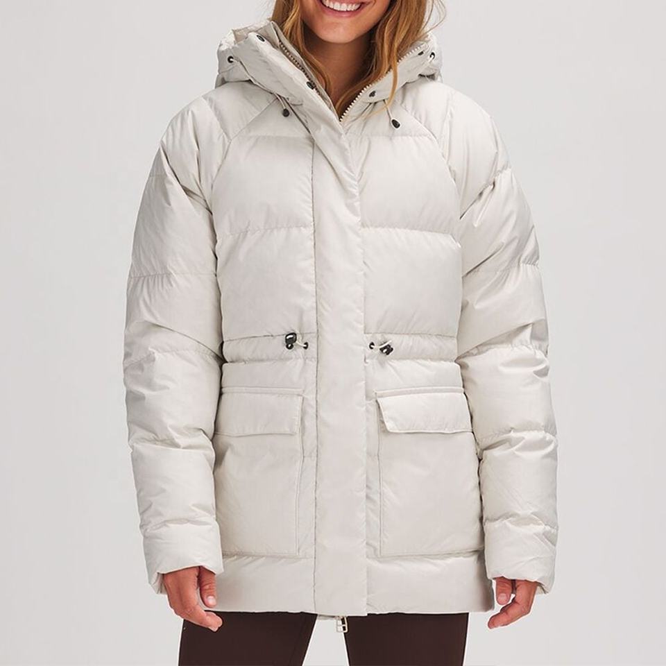 เสื้อแจ็คเก็ตขนเป็ดสีขาวกันน้ำสำหรับผู้หญิงเสื้อโค้ทแฟชั่นมีฮู้ดปรับแต่งได้สำหรับฤดูหนาวสินค้ามาใหม่