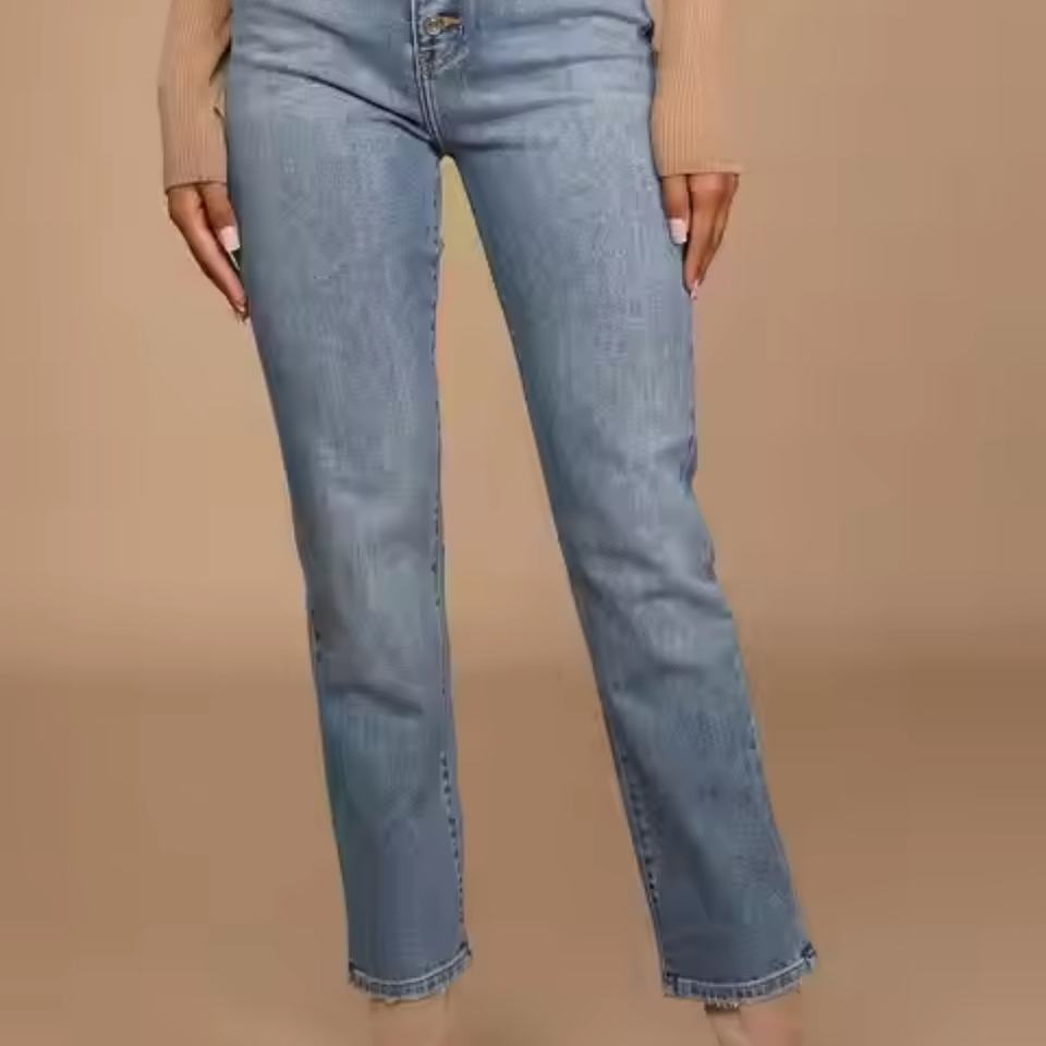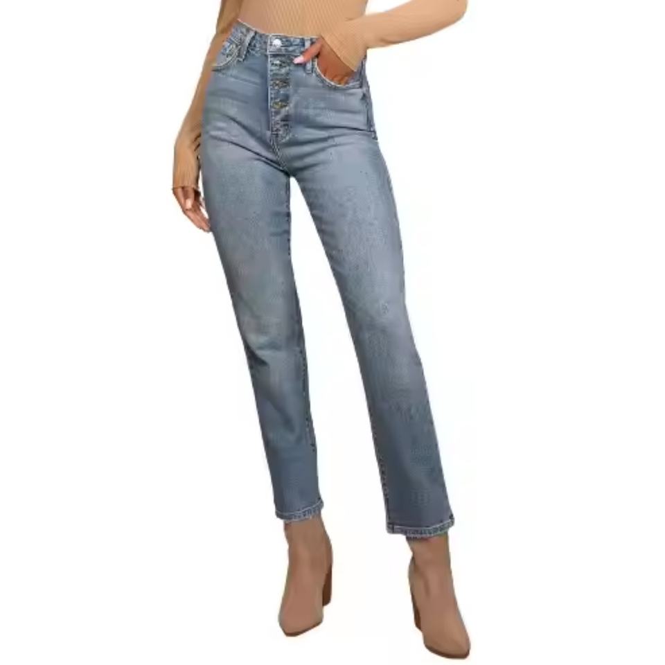 กางเกงยีนส์ทรงมัมเอวสูงสำหรับผู้หญิงรุ่นใหม่ ผ้าเดนิมสีอ่อน ระบายอากาศได้ดี ทรงขาบาน แต่งดีเทลขาดๆ เอวสูง ทรงเข้ารูป