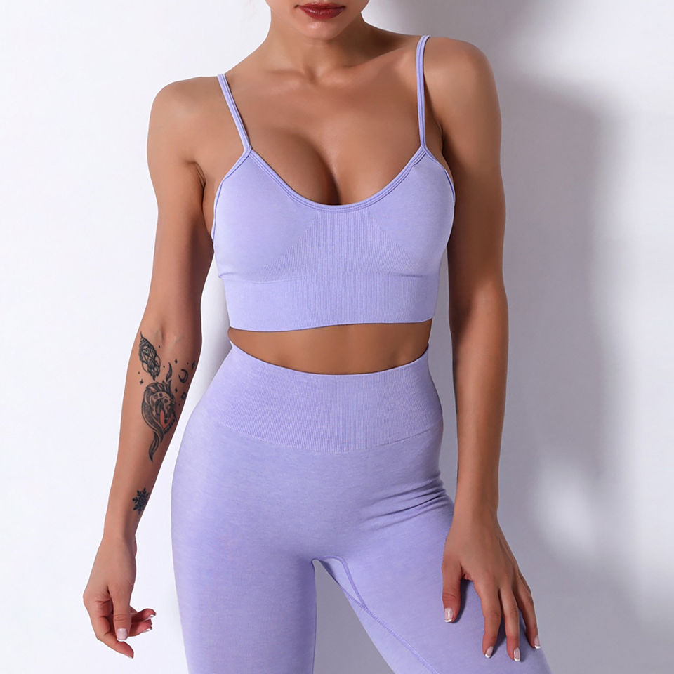 ชุดโยคะ2ชิ้นผ้ายืดสำหรับผู้หญิงมาใหม่กางเกงขาสั้นและบราลายพื้นพร้อมโลโก้ใหม่ล่าสุดที่เอว