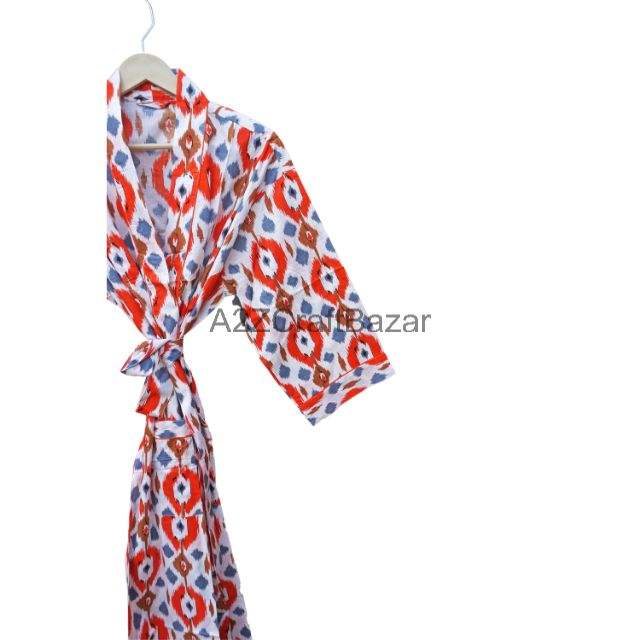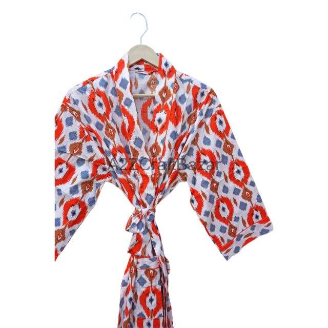 ชุดกิโมโนผ้าฝ้ายลายดอกไม้สำหรับผู้หญิง, ชุดกลางคืนระบายอากาศได้ดีชุดคลุมอาบน้ำสำหรับทุกฤดูกาลของขวัญวันแม่โลโก้ด้านหน้า