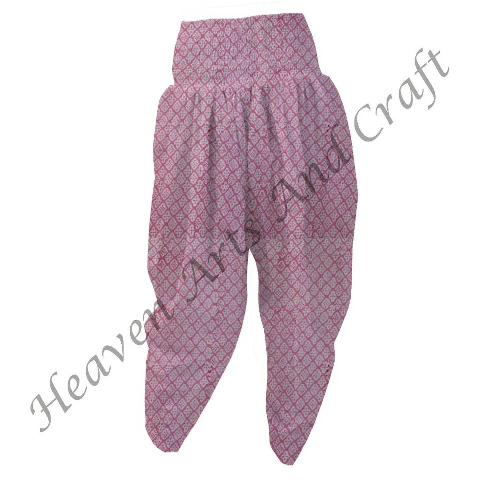 ชุดนอนผ้าฝ้ายน้ำหนักเบาสำหรับผู้หญิงใส่กลางคืนกางเกง Patiala ทำด้วยมือพิมพ์ลายดอกไม้เอวยางยืด