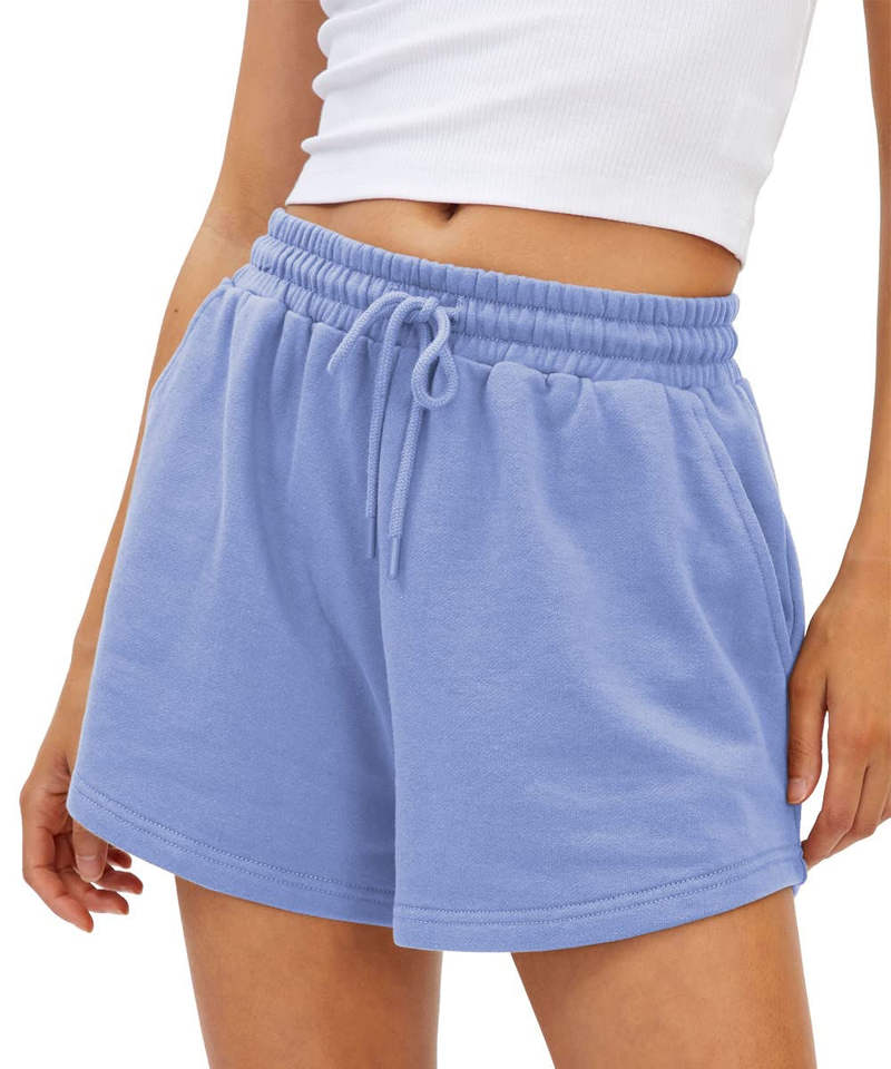 กางเกงขาสั้นผ้าฝ้ายระบายอากาศสำหรับผู้หญิง, สินค้ามาใหม่กางเกงเอวสูงกว้างพิมพ์ลายโลโก้สไตล์สปอร์ตน้ำหนักเบา
