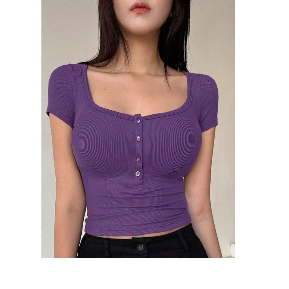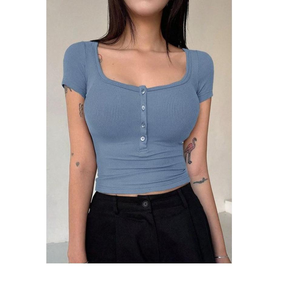 เสื้อกล้ามเข้ารูปวินเทจสำหรับผู้หญิงเสื้อกล้ามลำลองแขนสั้นมีกระดุมเสื้อ100% ถักผ้าฝ้าย BD สำหรับฤดูร้อนสินค้ามาใหม่