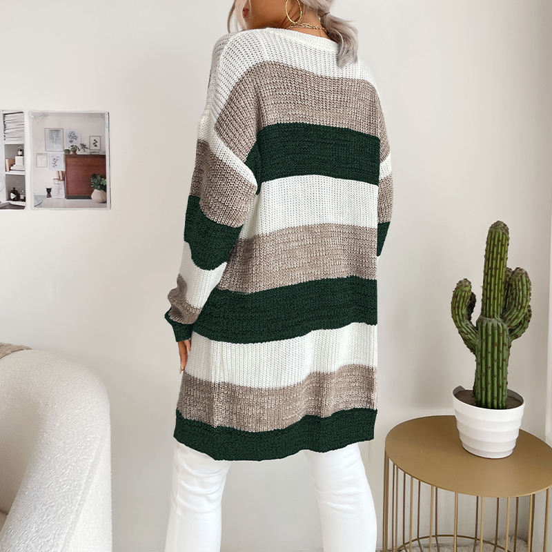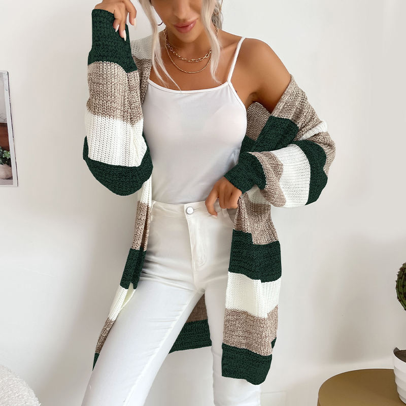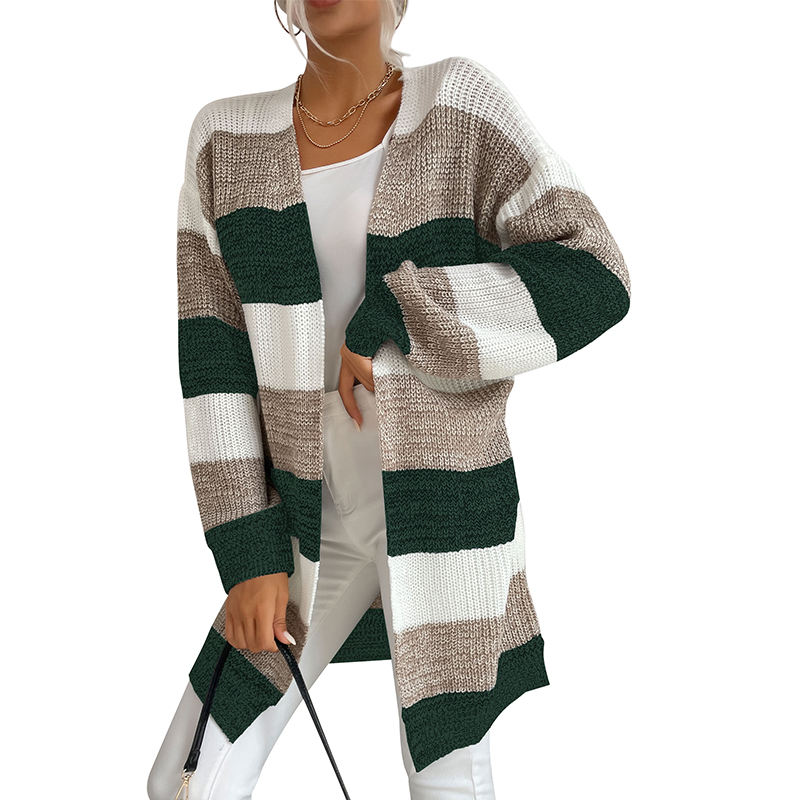มาใหม่สตรีบล็อกสีเสื้อกันหนาวเสื้อOutwearแขนยาวเปิดด้านหน้าหลวมถักเสื้อสเวตเตอร์ถัก