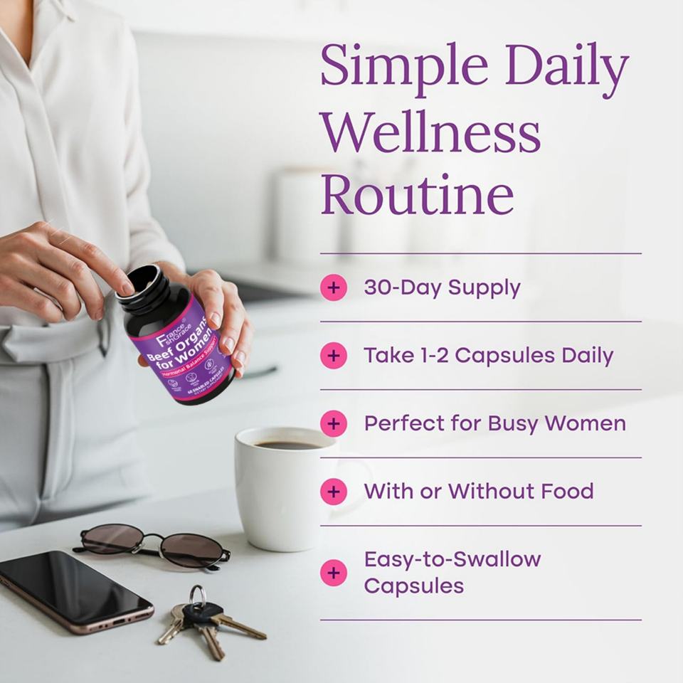 อาหารเสริมออร์แกนเนอร์วัตถุจากเนื้อวัวสำหรับผู้หญิง สูตรใหม่ พร้อมสมุนไพรเสริมฮอร์โมน 60 แคปซูล