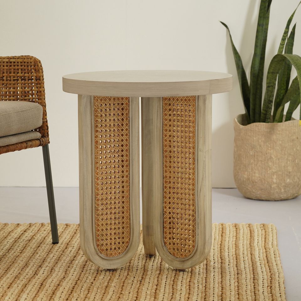 ชื่อผลิตภัณฑ์:โต๊ะข้างไม้ธรรมชาติและหวาย