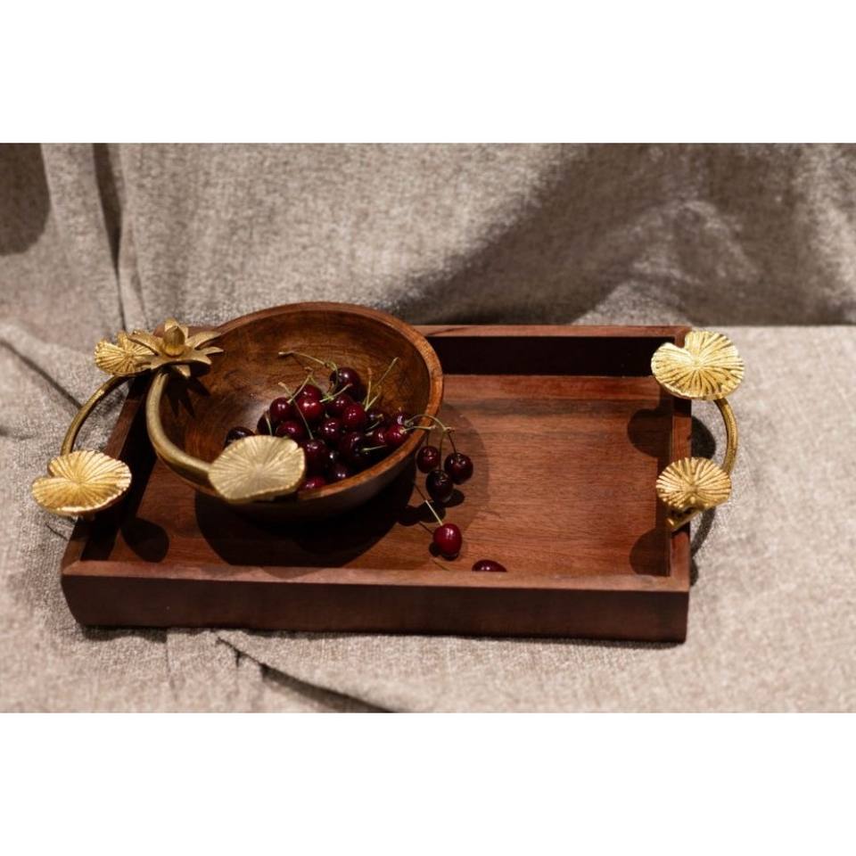 ชามเสิร์ฟพร้อมถาดจับคู่สำหรับผลไม้หรือสลัดไม้ไผ่ออร์แกนิกธรรมชาติมาใหม่