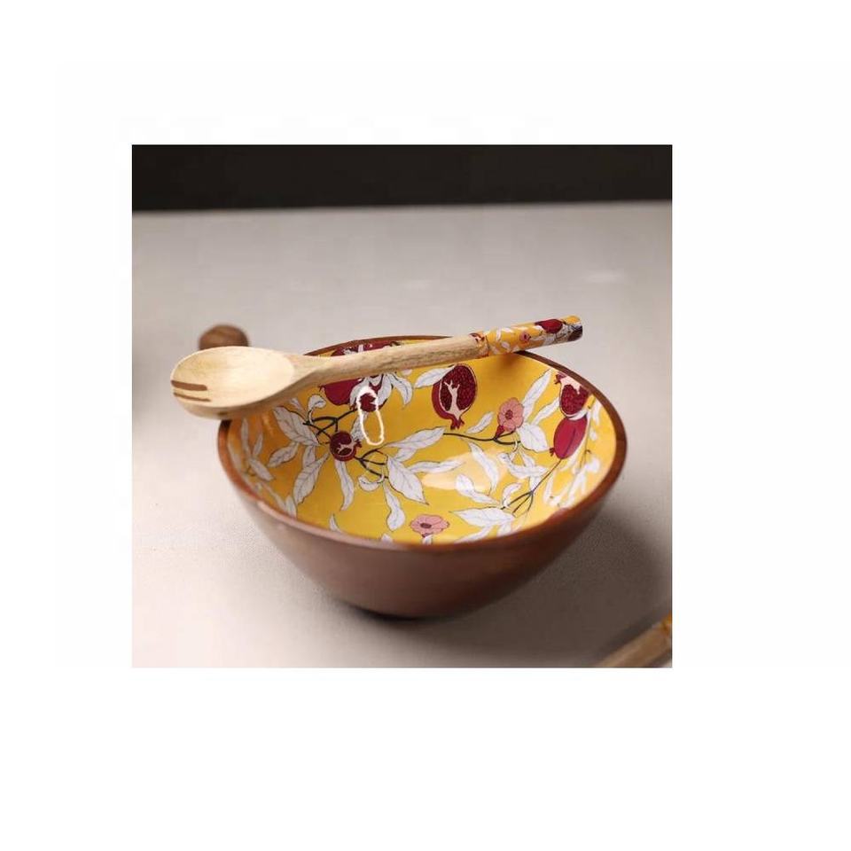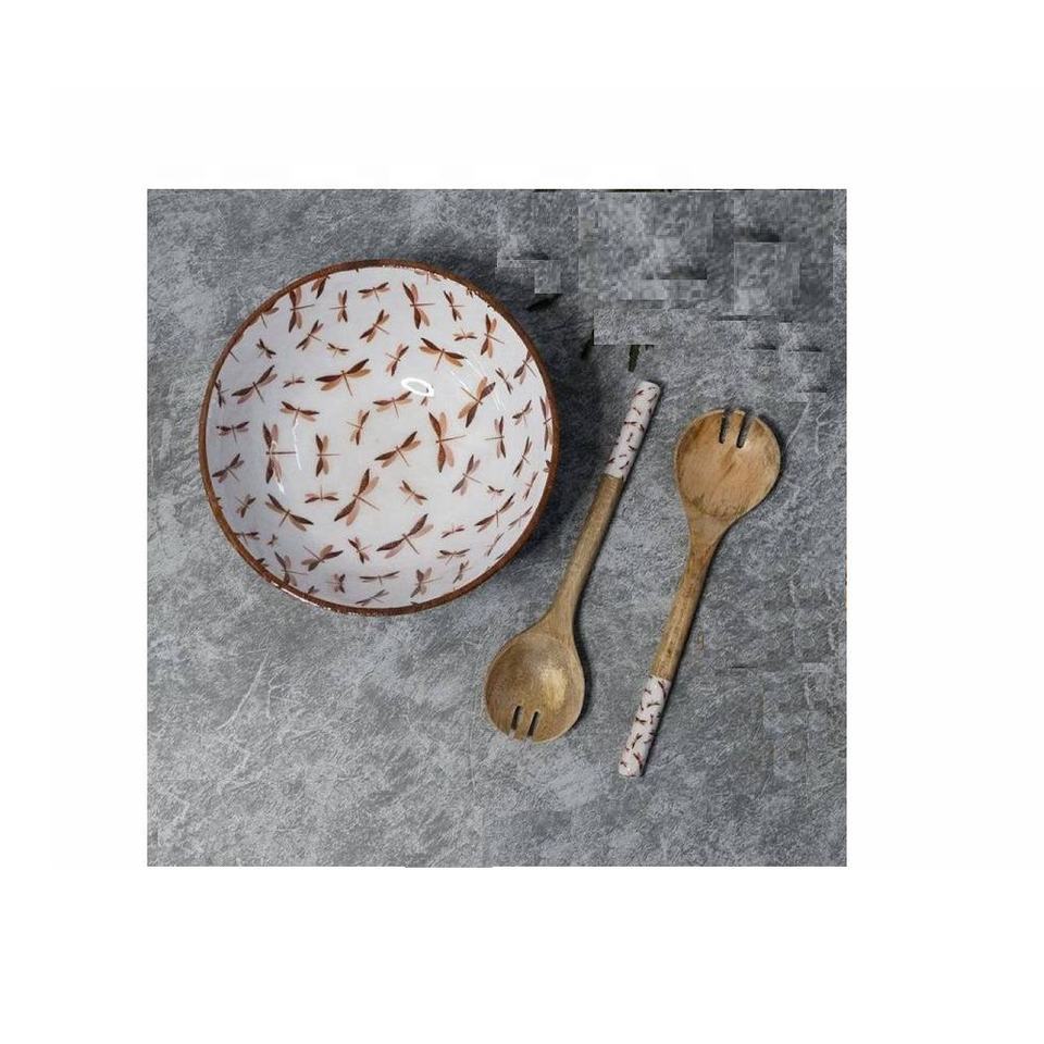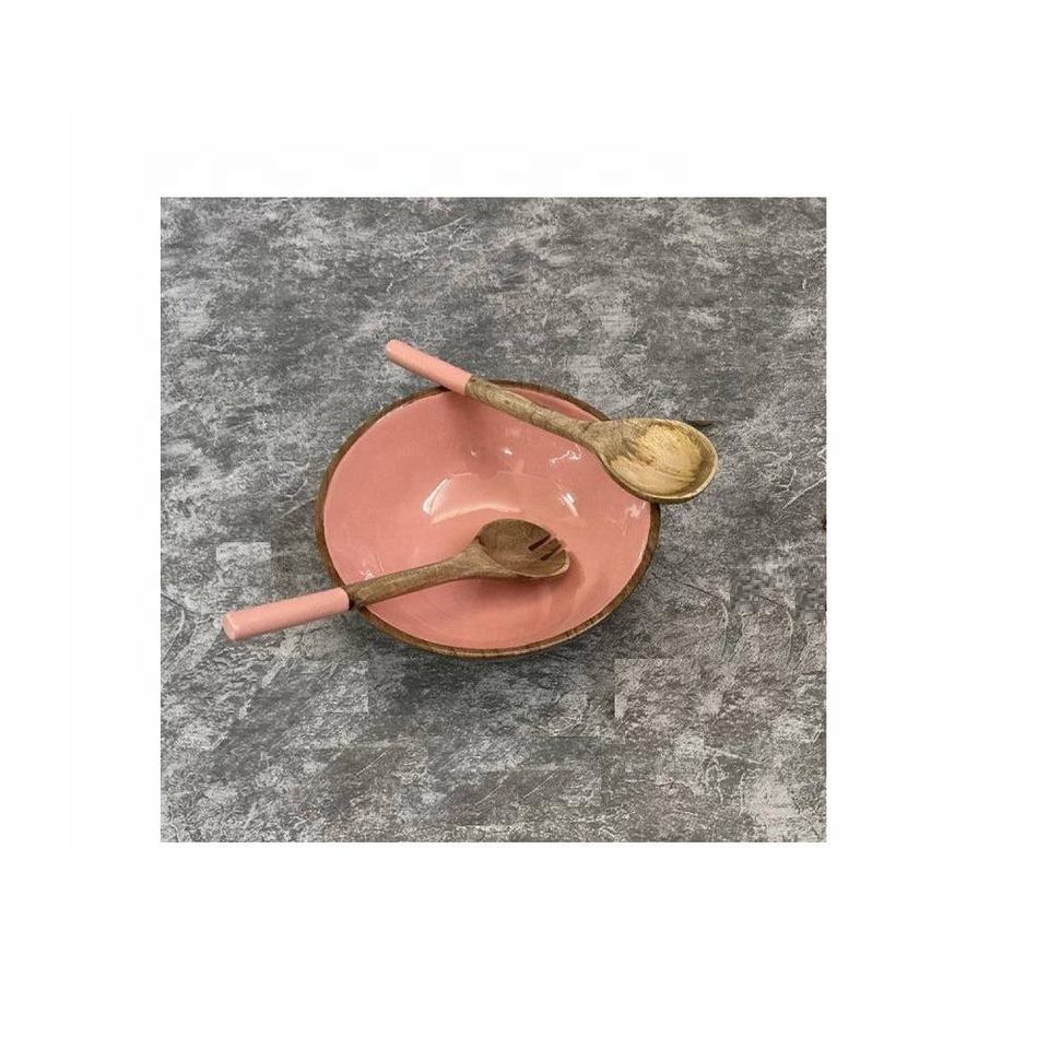 ชามเสิร์ฟสลัดไม้มาใหม่พร้อมเซิร์ฟเวอร์สลัดชามตกแต่งไม้มะม่วงสำหรับเคาน์เตอร์ห้องครัว